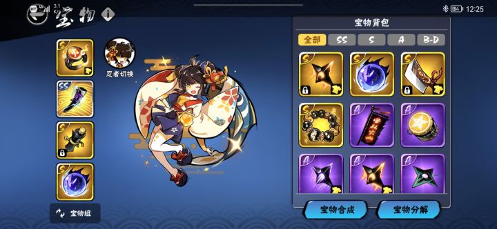 主玩苍牙副小黑,不氪,就退游的时候买了一个苍牙的沙滩皮肤。主宝物有,三勾鬼戒,两勾刀鞘,一勾忍宗,笼手,寒冰。