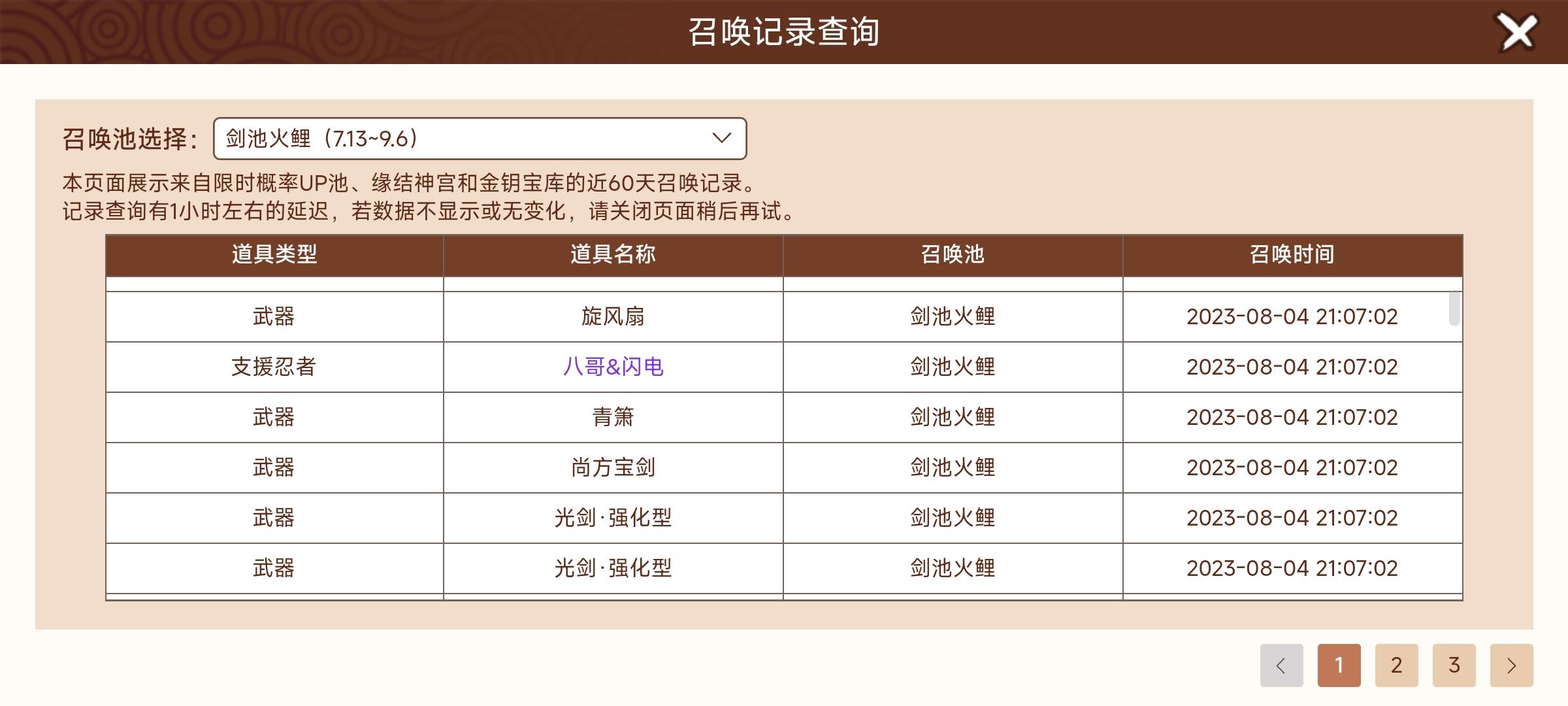召唤记录查询的一页记录是多少抽?