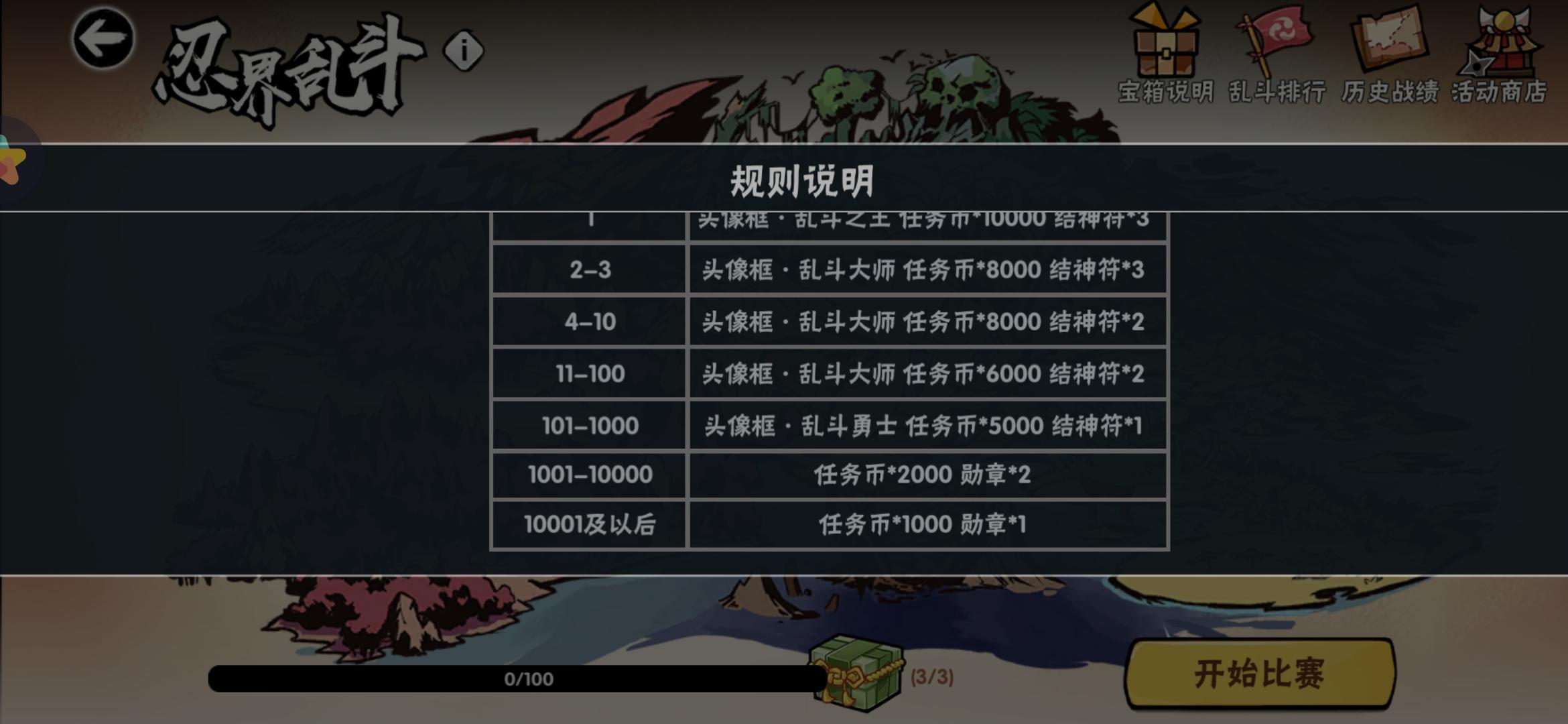 忍宝🚪,周末乱斗活动前千跟前百大概要打多少积分哇 然后是不是取两天中最高的进行结算