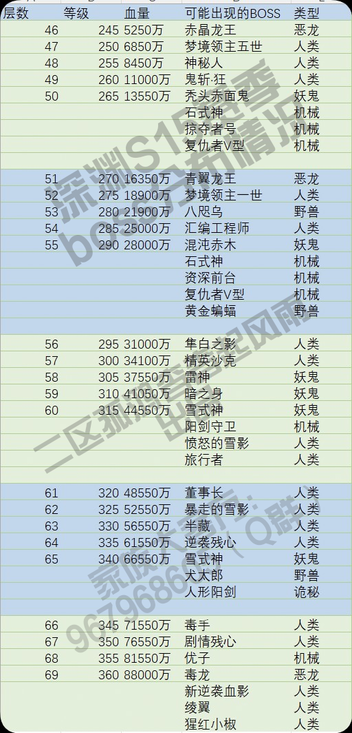 此表适用于更新后S15赛季的boss血量,有需要的家族可以自行取用参考。顺便锐评一下S15赛季:很显然策划以为高层深渊是需要拖长战线的,出了刀客镖影王祝等卡牌来稀释卡池,使本就不多的好卡更加雪上加霜;逆袭血影的身法和最慢的一闪也是交相辉映;懒得出头像于是把中等家族的攻坚层增加血量,对于大家族而言尚可接受,对于中等家族可就是绝对的不怀好意了。当然,深渊环境的恶化不能阻挡我们努力的