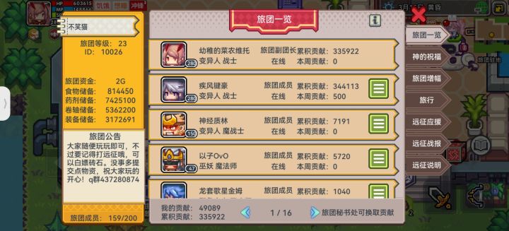 常驻第六世界,未来有需求的话,可以开第七世界。欢迎各位萌新大佬加入旅团号:10026 不笑猫基本要求就是打远征就行了,其他旅团贡献的没要求#伊洛纳旅团