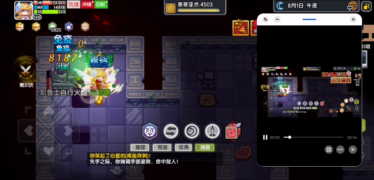 在大地图流血至死的一瞬间碰到怪——出不去,攻击不了,怪不打你。选择退出游戏重进