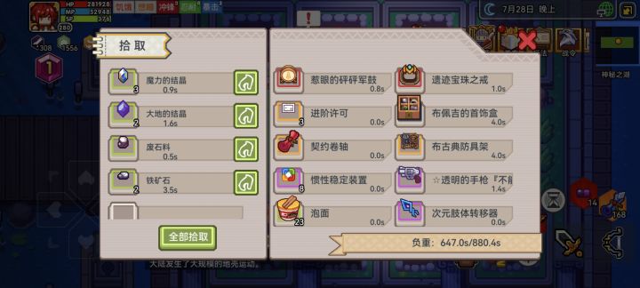 什么时候把矿石这些也加进材料箱,实在不行把自动战斗那里加个拾取开关也行啊
