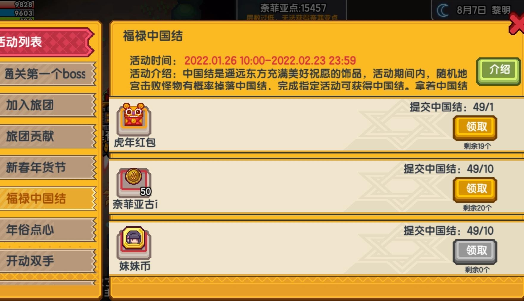 活动到23号截止活动期间内刷地宫概率掉落中国结今天21号,一个中国结没出呀是我太非酋了?