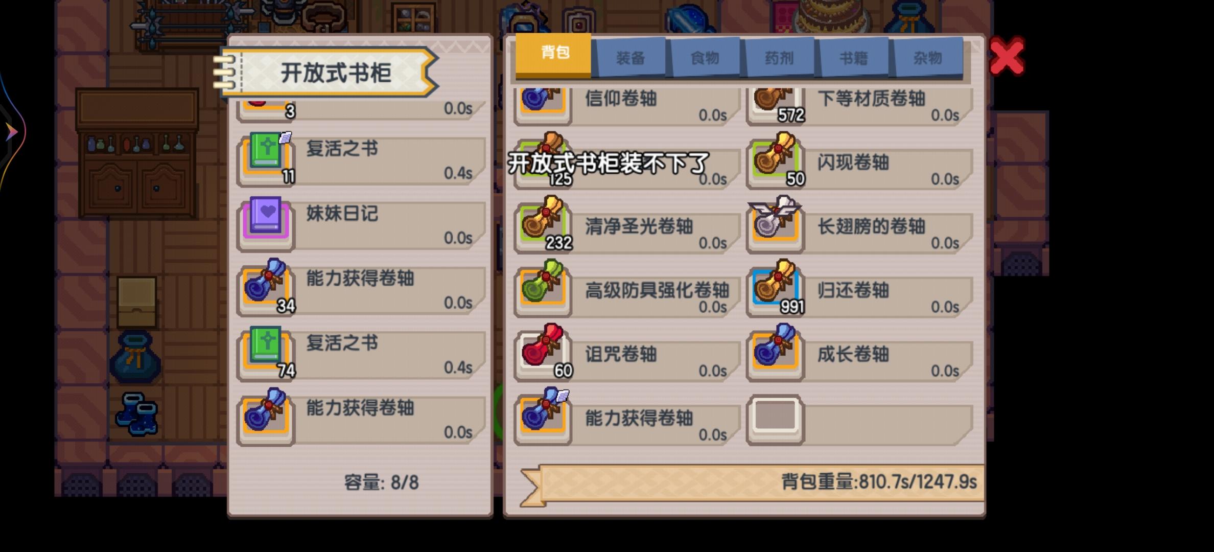 我有三种能力卷轴,一种祝福的,两种未祝福的,我不明白这是为什么,占我三个格子,来回试了好多遍那两个白板的放不了一起