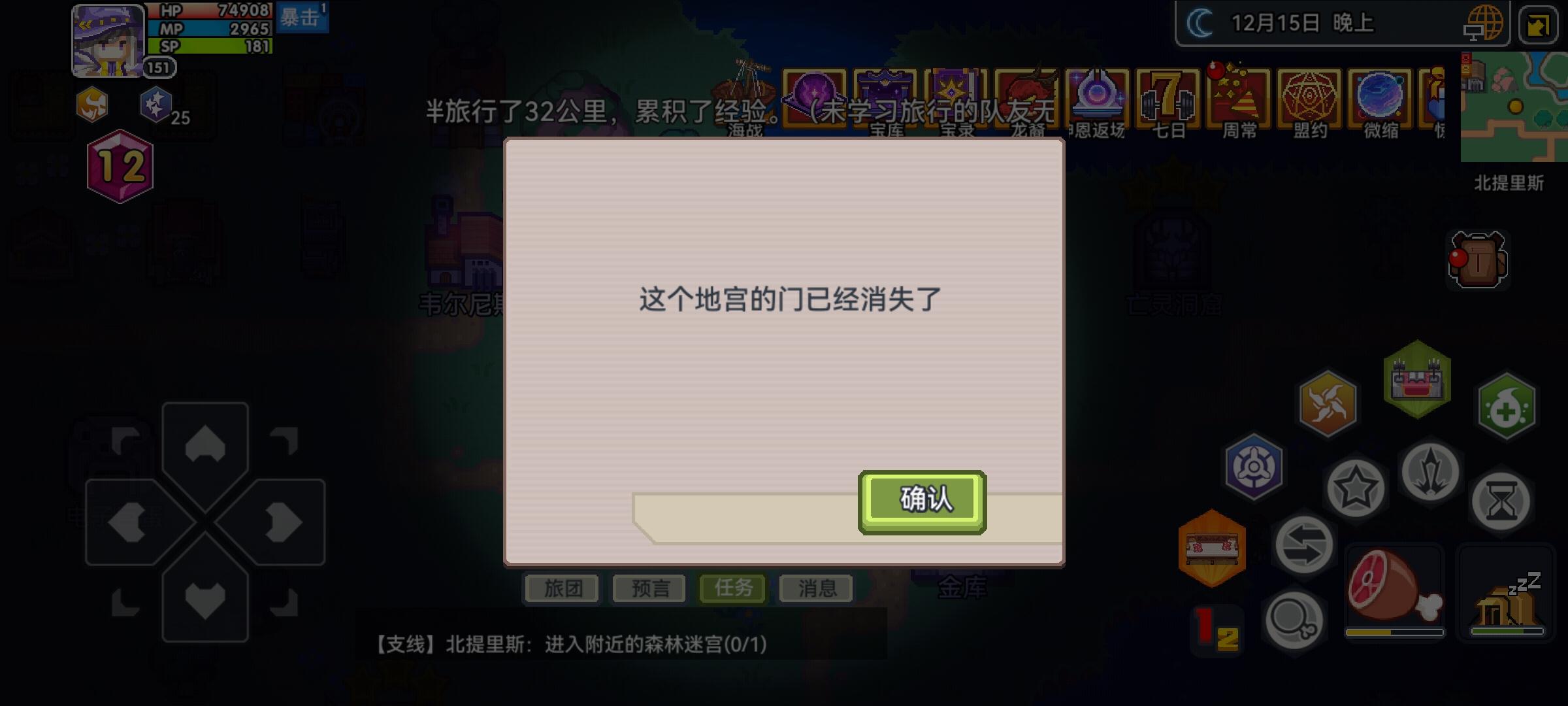 在韦尔尼斯的铁匠锻造教学中,有个需要进入指定地宫的任务。但这个地宫我不小心用微缩世界的扫荡功能打掉了,导致地宫进不去,任务卡死。