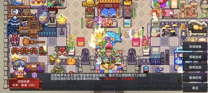 1.像这些道具打开之后有时候很容易误触就自动关闭了,还得重新打开,既然有关闭虚拟按键那为什么四周(主要是两侧)一触碰也会自动关闭?能不能像附魔书一样打开后直接锁定?2.初级执事领取双倍加成后会自动退出,能不能优化成返回?或者优化成领取一次就能获得一天所有的双倍加成?