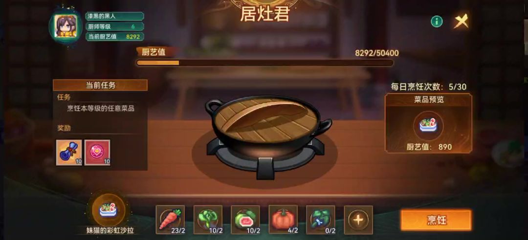 官方真的不打算赔偿我精神损失费吗,做沙拉变成咸鱼,连任务都交不了,还有菜谱死活点不到,我游戏里是真不会做饭啊
