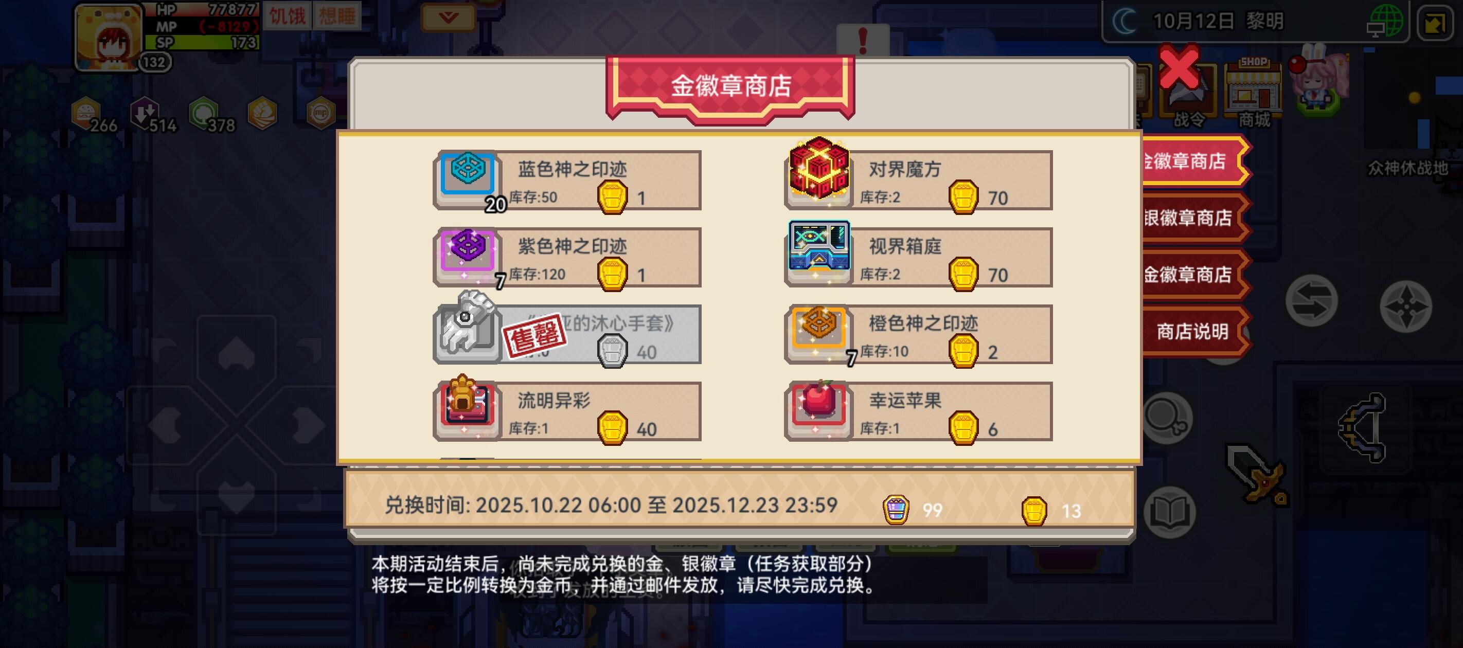 哪位大哥能告诉我这个金徽章什么时候刷新呢?之前我本来打算兑换的,结果40颗金徽章全都没了
