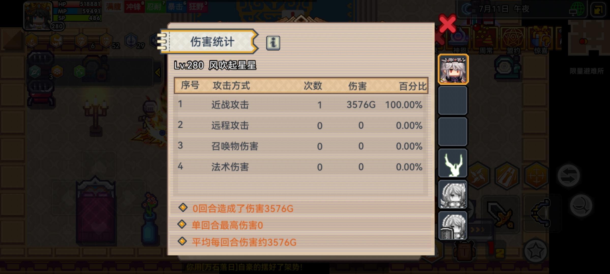 因为新宠物抽出来,刚好装备够,试了试奇袭,也是饱腹状态