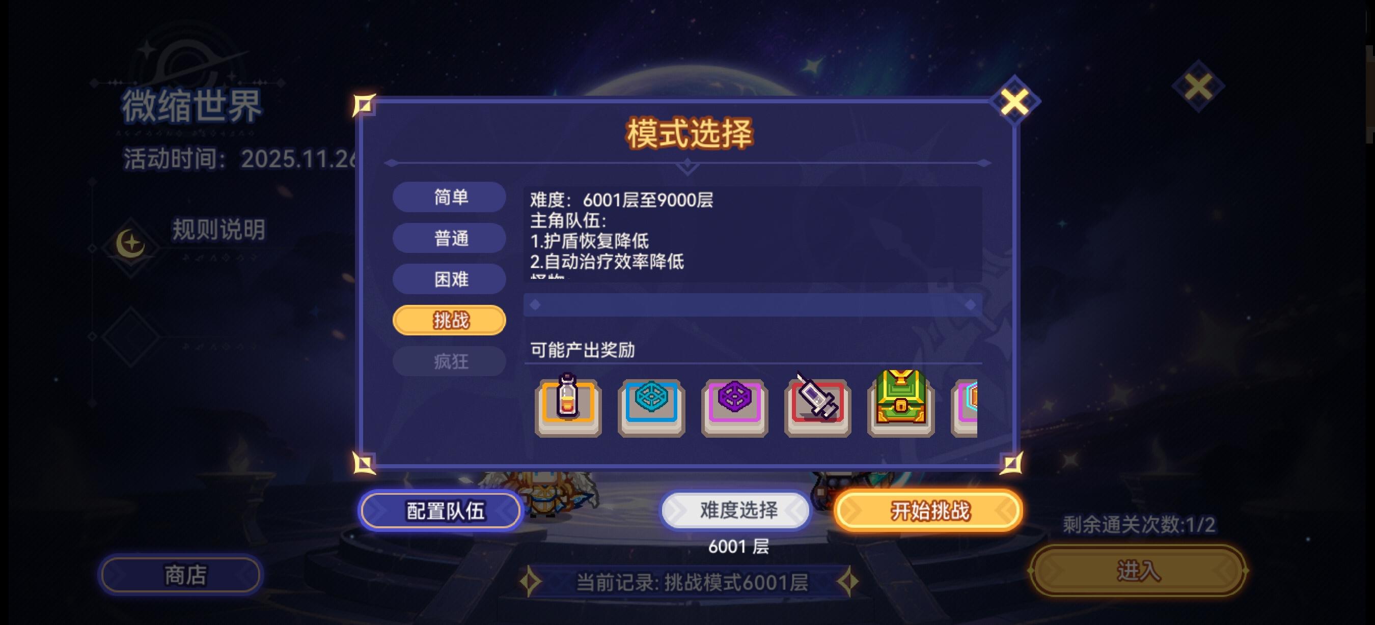 刚回坑,问下微缩世界疯狂难度怎么开启?