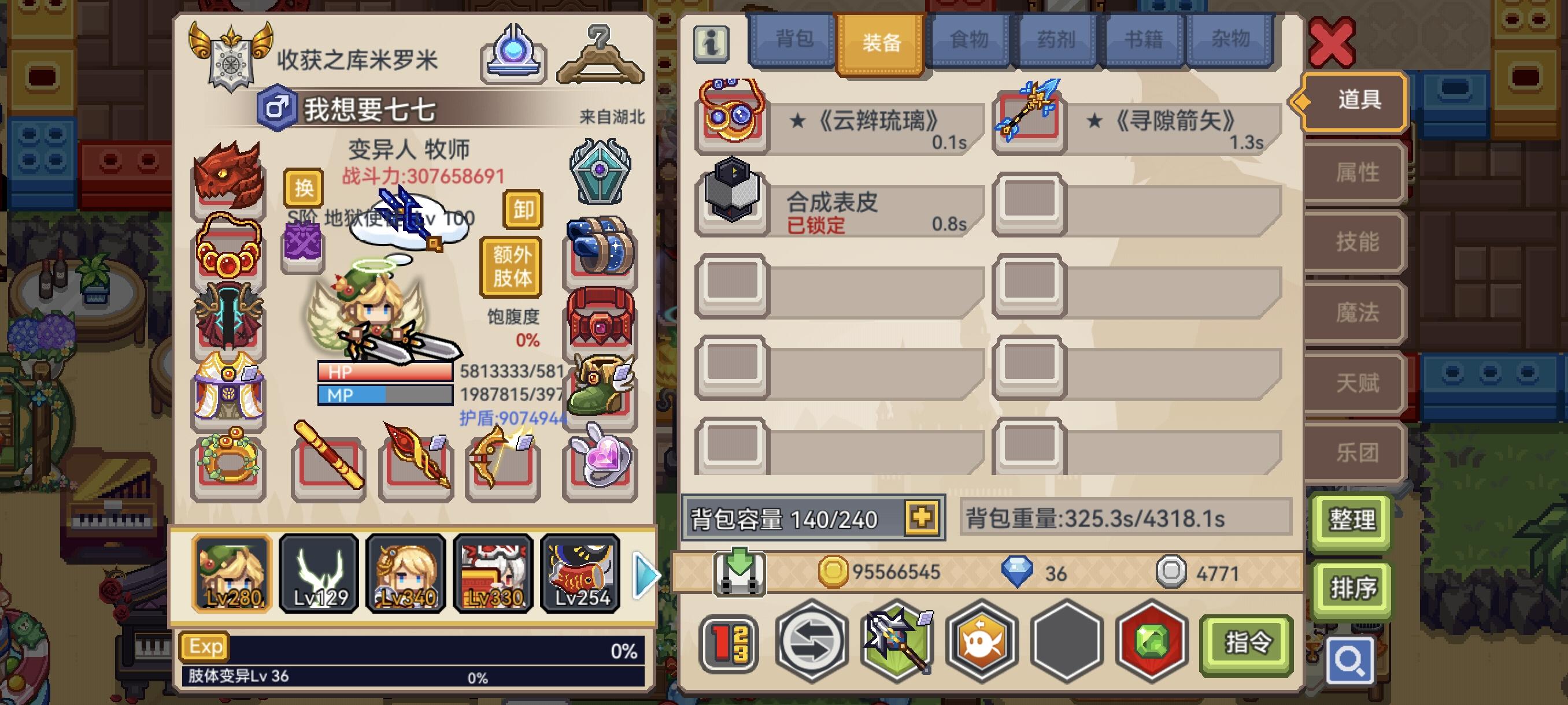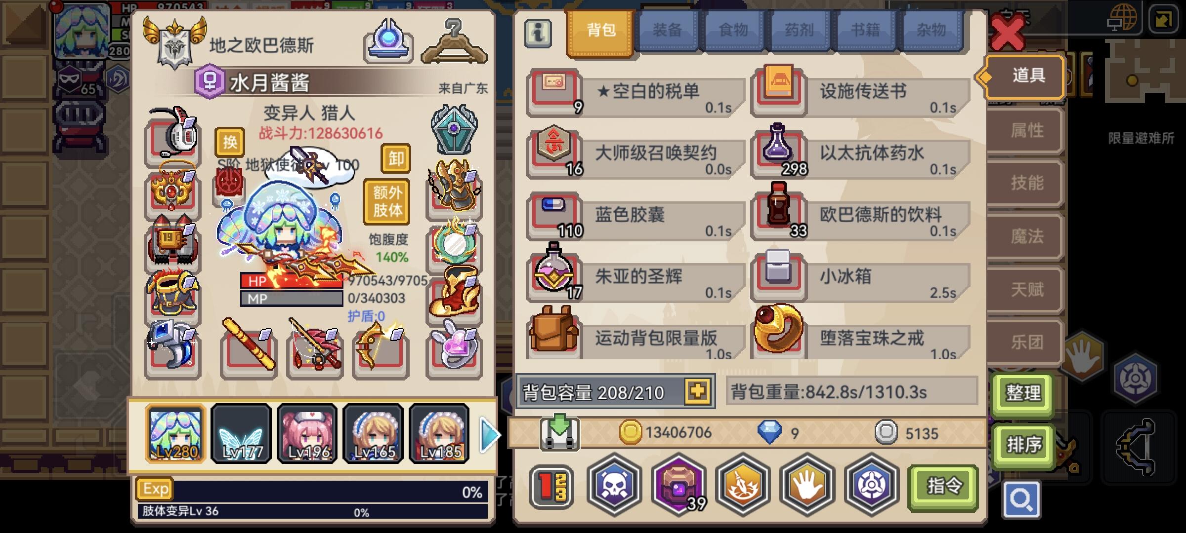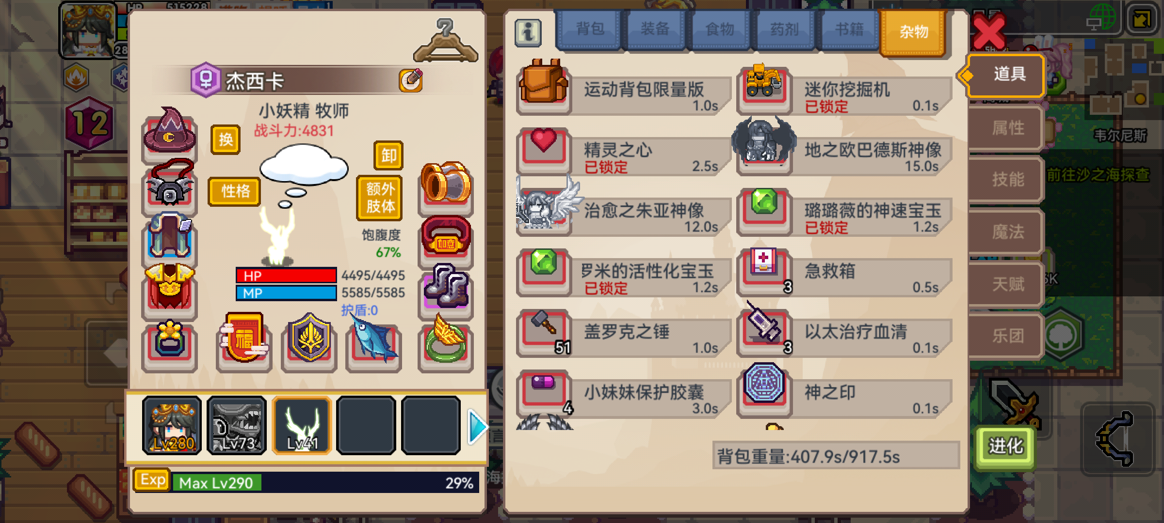 手动打没时间目前星河3级 有安全着陆 新宠物狼盾没有 尖叫鸡没有 魔免130 物免60挂机打突然就暴毙了