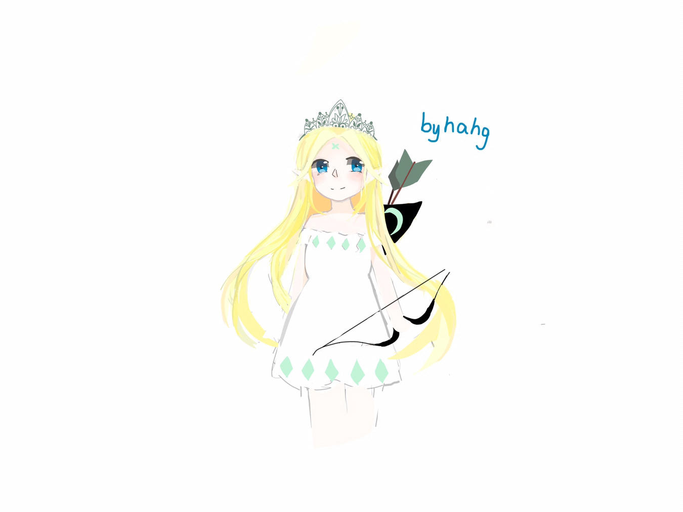 成品图,人物出处《素晴》-阿库娅。附上手持道具(又加了一行描述,我不确定收获神是不是女性):没啥绘画功底,纯粹参与玩玩,PS用鼠标一层一层叠着画的:觉得眼神不够“睿智”,改了一下眼睛:原图表情: