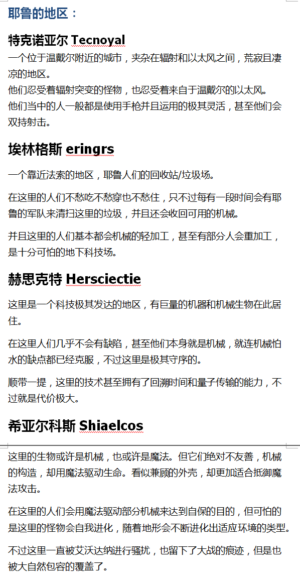 「第一部分」在耶鲁…靠近法索的地区,那里名叫埃林格斯。那是一片什么样的地方呢?山清水秀?不不,朋友,那只是表层;邪恶肮脏?不不,朋友,你想的太过复杂。说到底,埃林格斯其实就是耶鲁人们的垃圾场,不论是来自由各种生活中的垃圾,或者实验的垃圾,亦或是某些不为人知的秘密…要我说啊…其实这地方算是半个天堂。为什么这么说呢?因为啊,这里一不缺吃穿,二不缺住行。其实扔下来的机械还有不少是可以用的。每次我