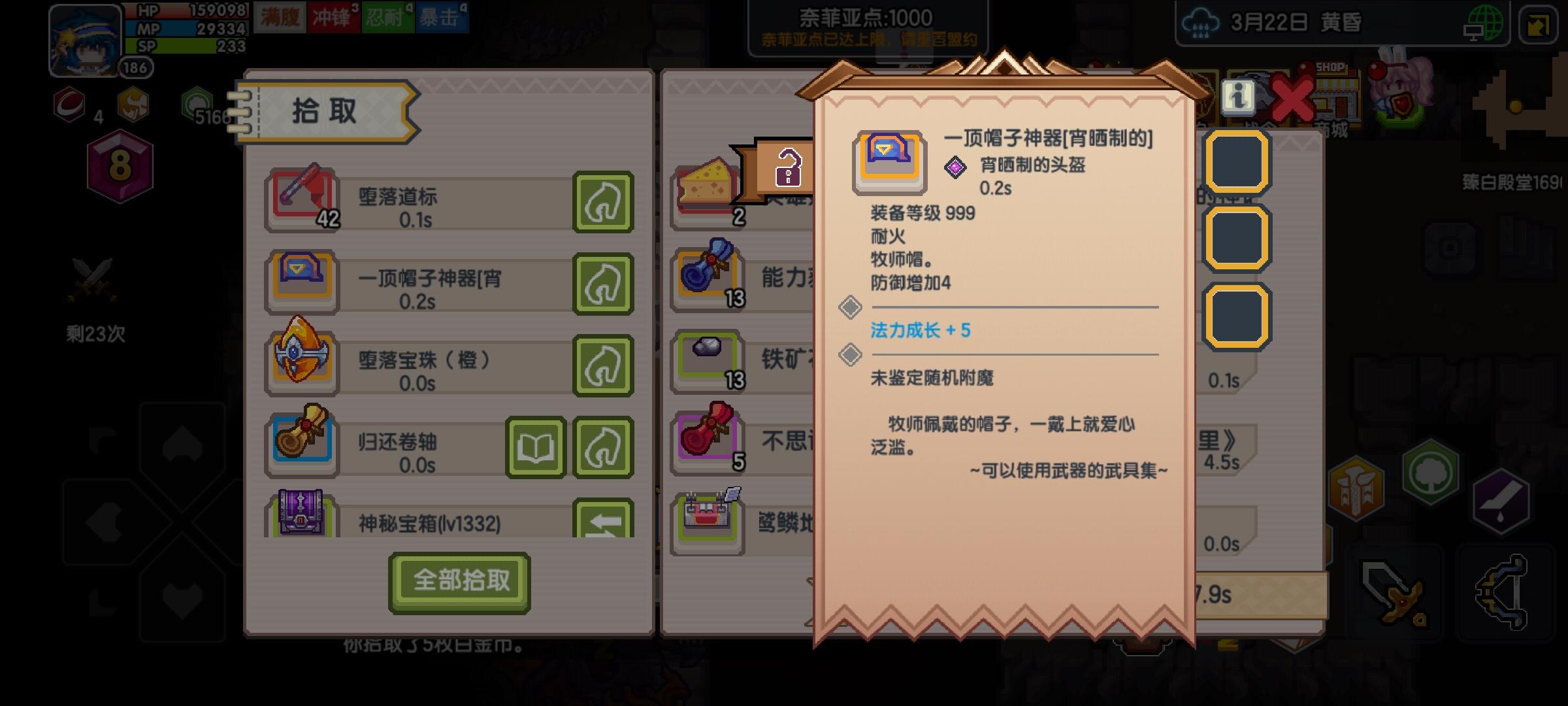 王女优先级最高,其次是天使(币多补)两件新装备不用看,第一个腕的效果目前了解是近战触发,第二个是为了补强灵魂收割者(游侠:huh?火法:huh?太阳骑士:huh?原来你会加强进阶啊)想玩猎人宠的可以试试新口味猛毒射手(可以给boss挂猛毒)着急猴力量套的可以搞个鬼王,这玩意给250力量。差不多就这些。其他的随缘