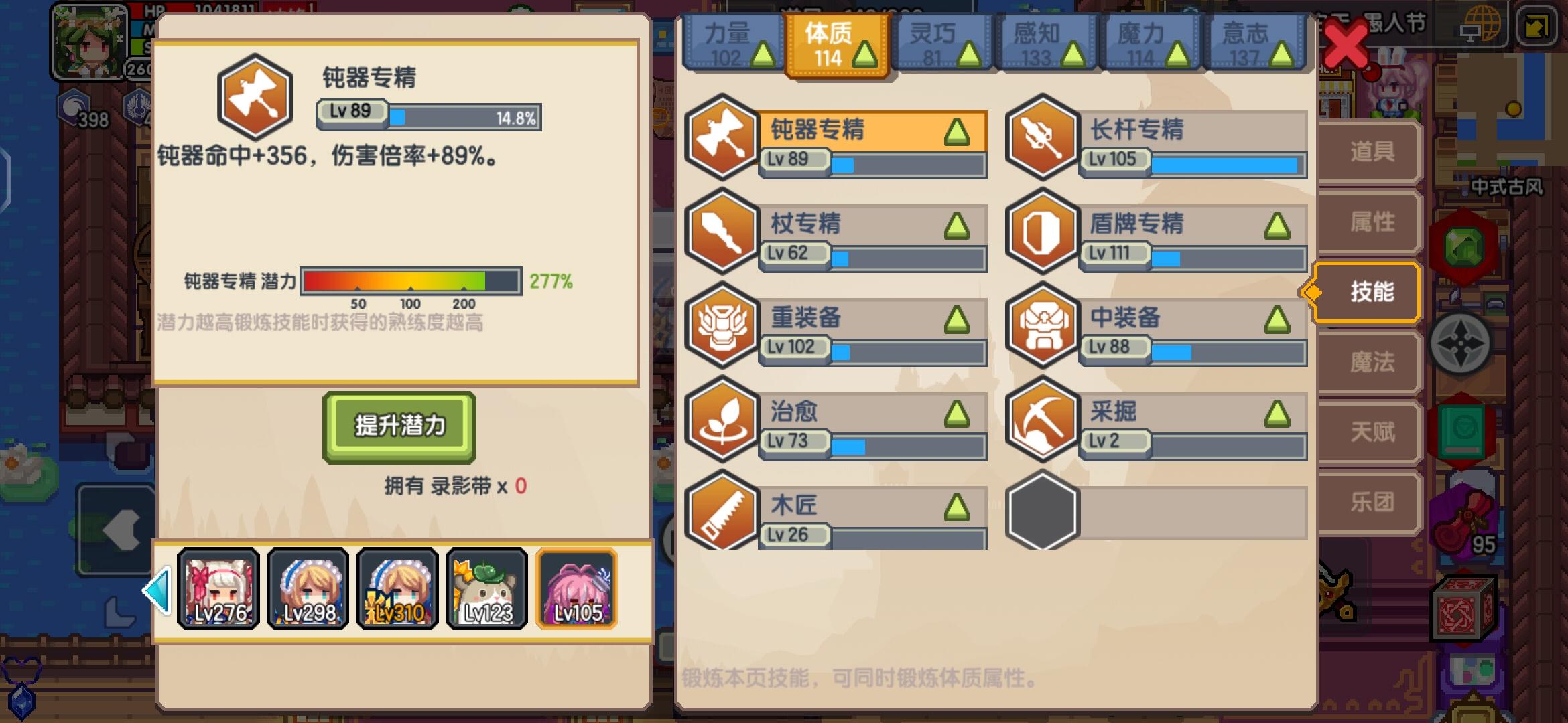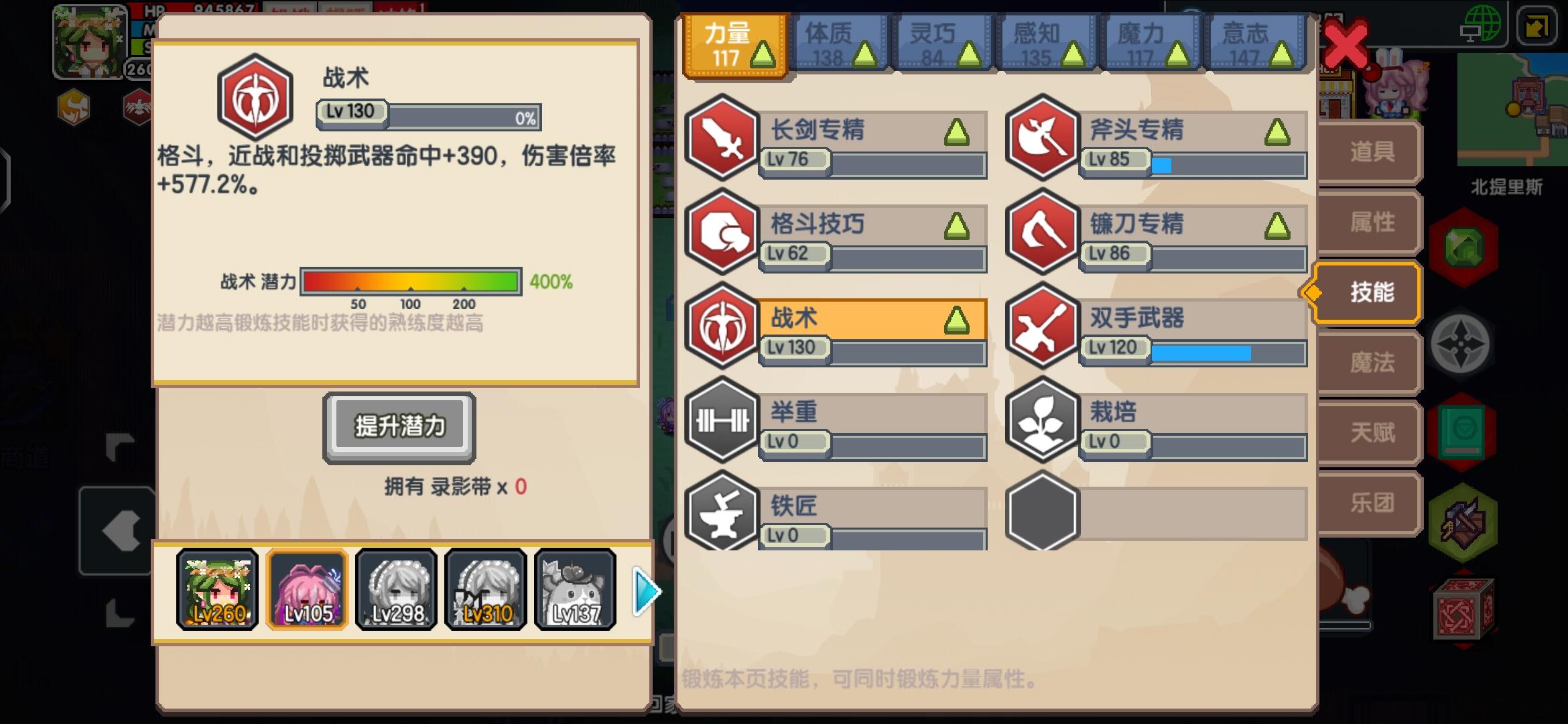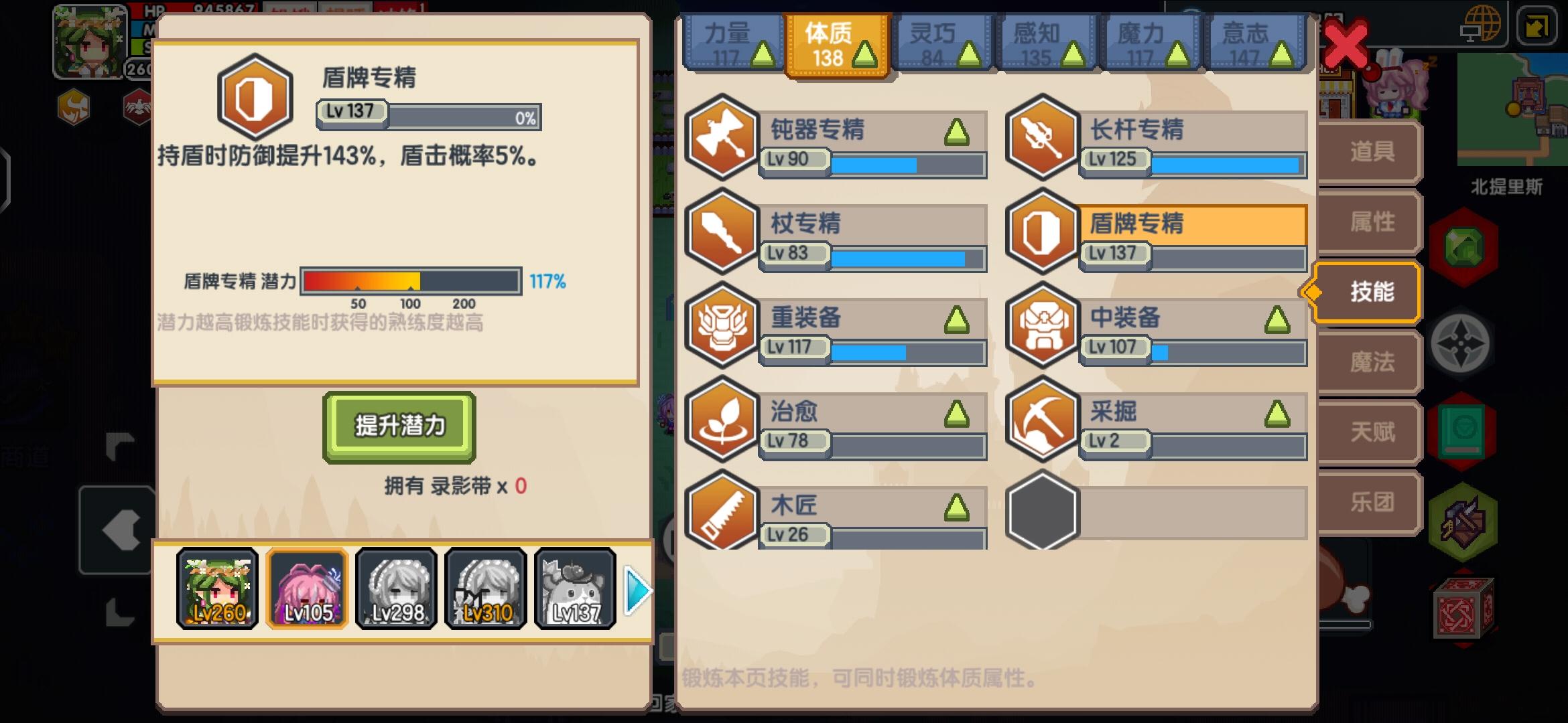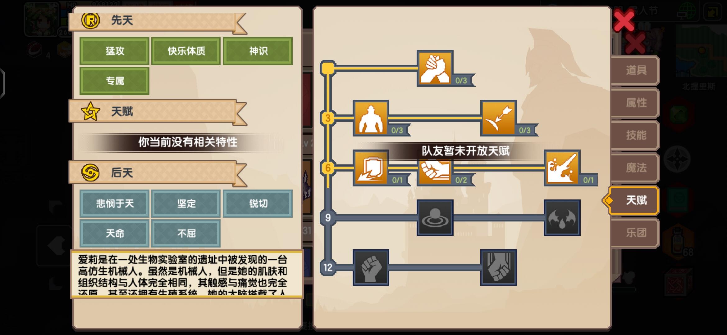 升到100级刷好天赋了,要压级的技能都学了,属性也稍微弄了点了,练技能一小时发现卡住了,属性突破后我没有提升属性的资源了,后面两天估计得给他刷力量肉和体质肉来吃了倒也不急着用,我自己还没有采集套,甚至丰收盾都没有,而且也不追求多么极致,能打北提就行而且发现一个比较有意思的事情,爱莉属性是从瓜尔身上转移来的,但是瓜尔的6维并没有掉,唔。。。白嫖快乐