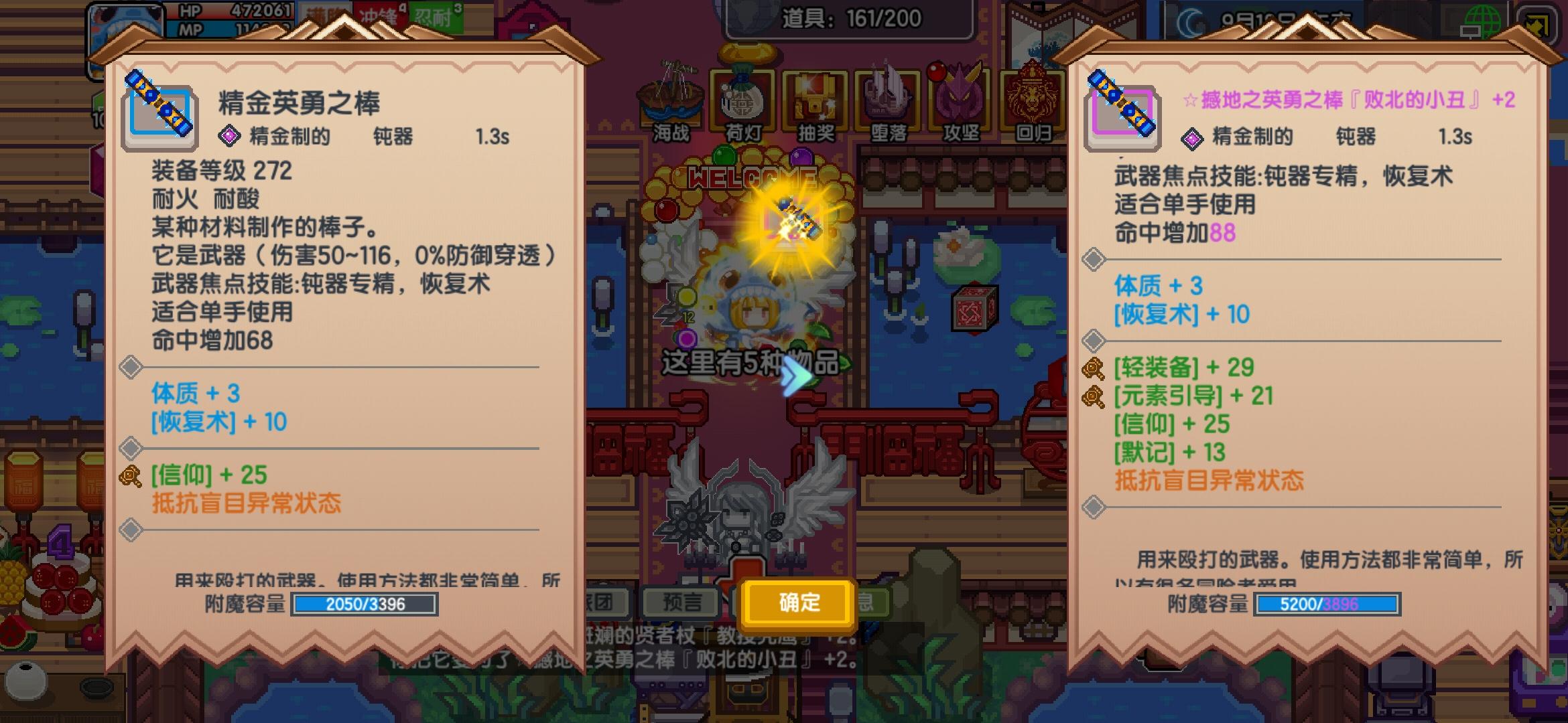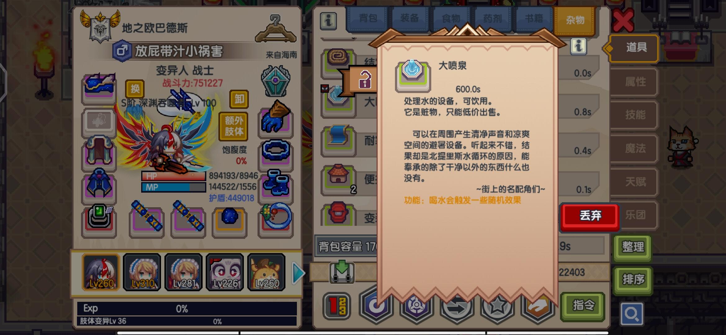 力量套12件,加上一些杂七杂八的垃圾装备,无buff情况下绿字1100力量了在群友建议下偷个喷泉回家