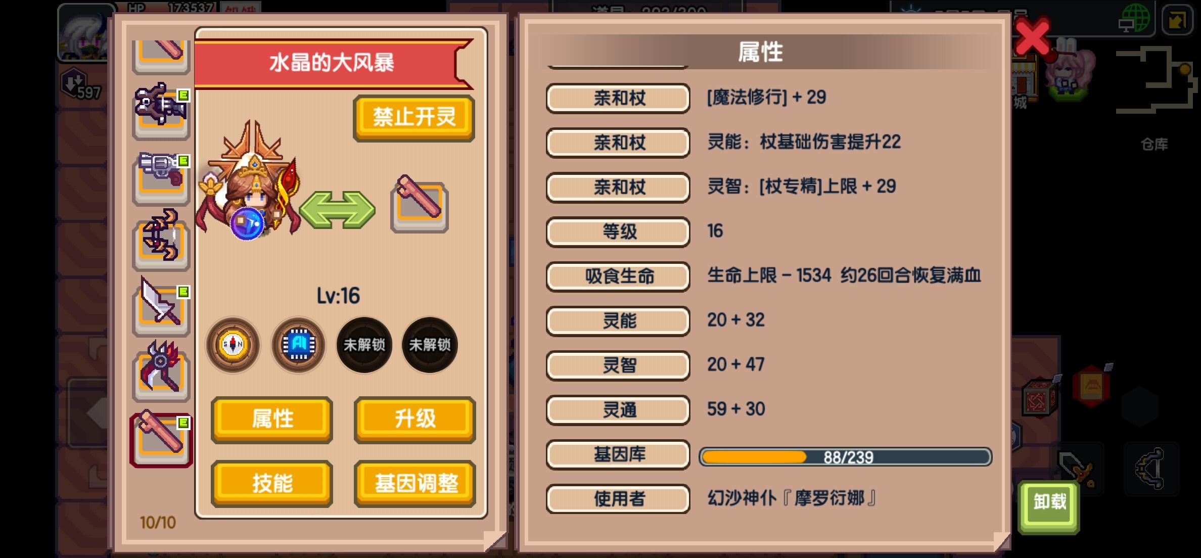 终于升满了,开始弄幻沙的魔法修行法杖,挺奇怪的,为啥这根法杖灵通加这么多