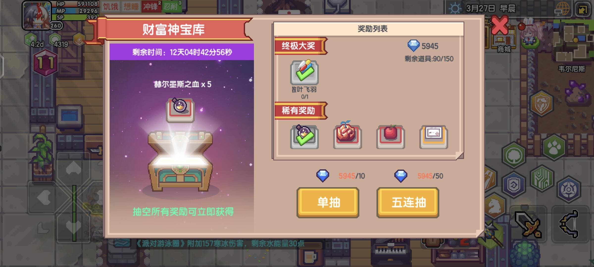 用了800水,下了226个蛋,下四从1330升到1511,涨了181上一次升是5月12日,大概两个多月,努努力看看年底能不能弄到2000下四不过,现在混乱药水和麻痹药水的产量跟不上体液的产量了。。。