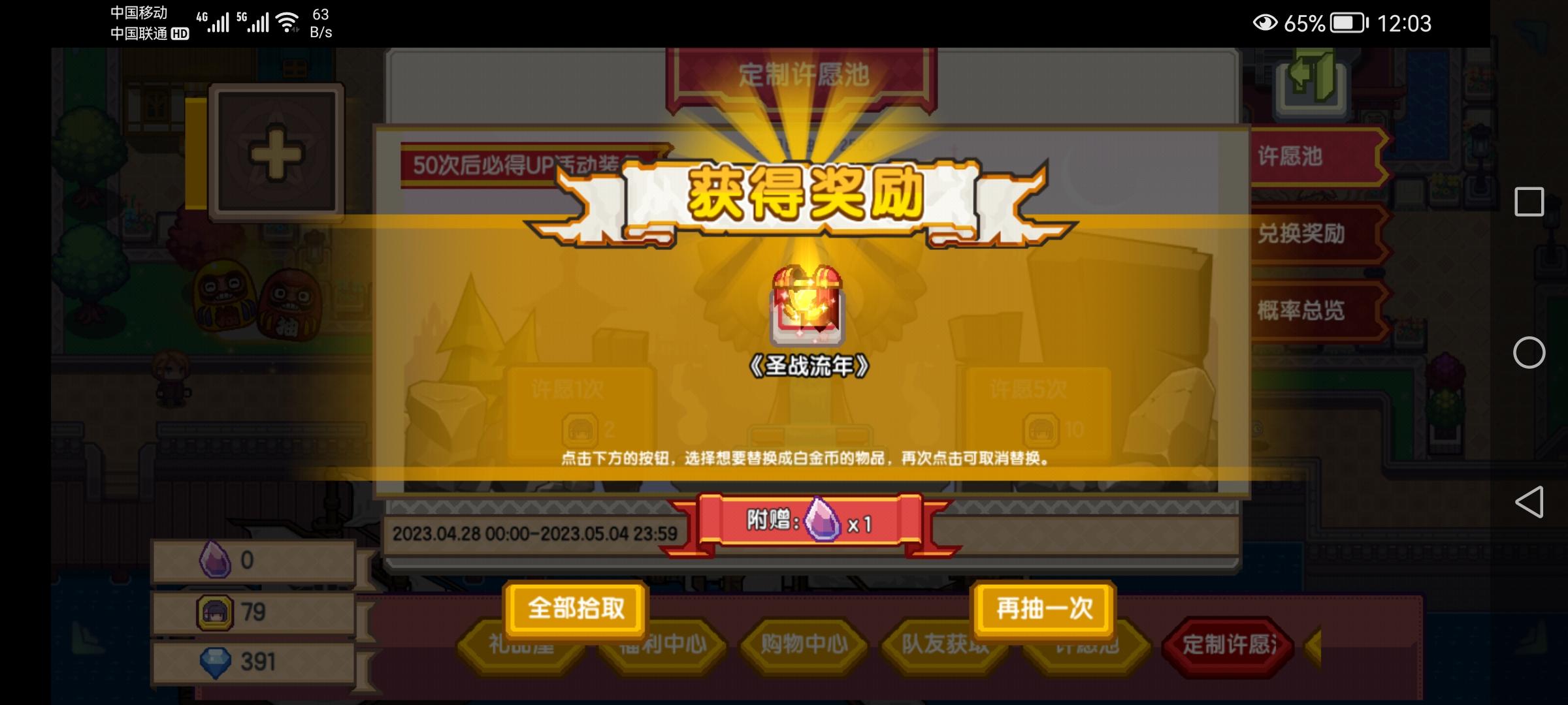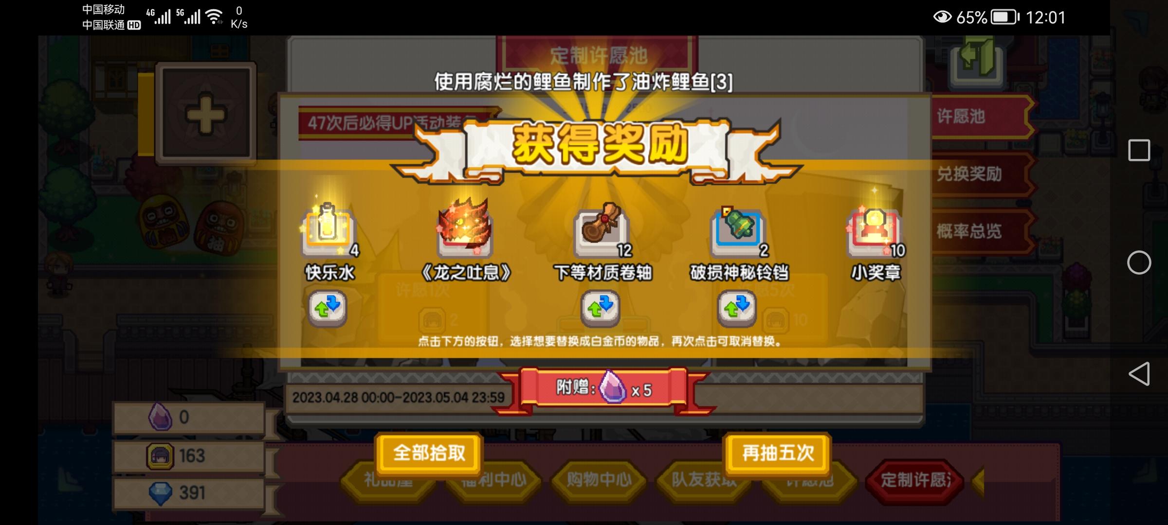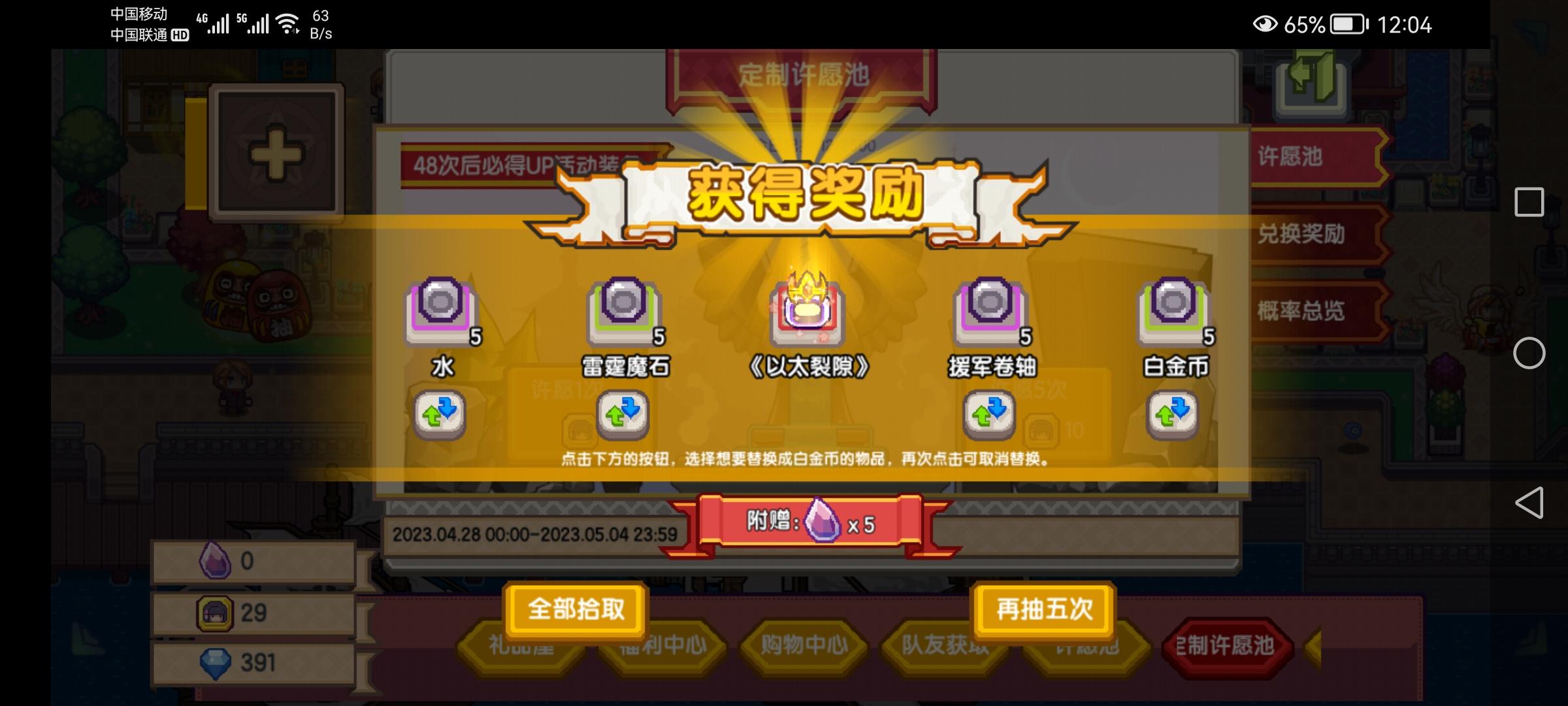 按双倍应该是90抽,还手滑了,抽了一发五连普通油