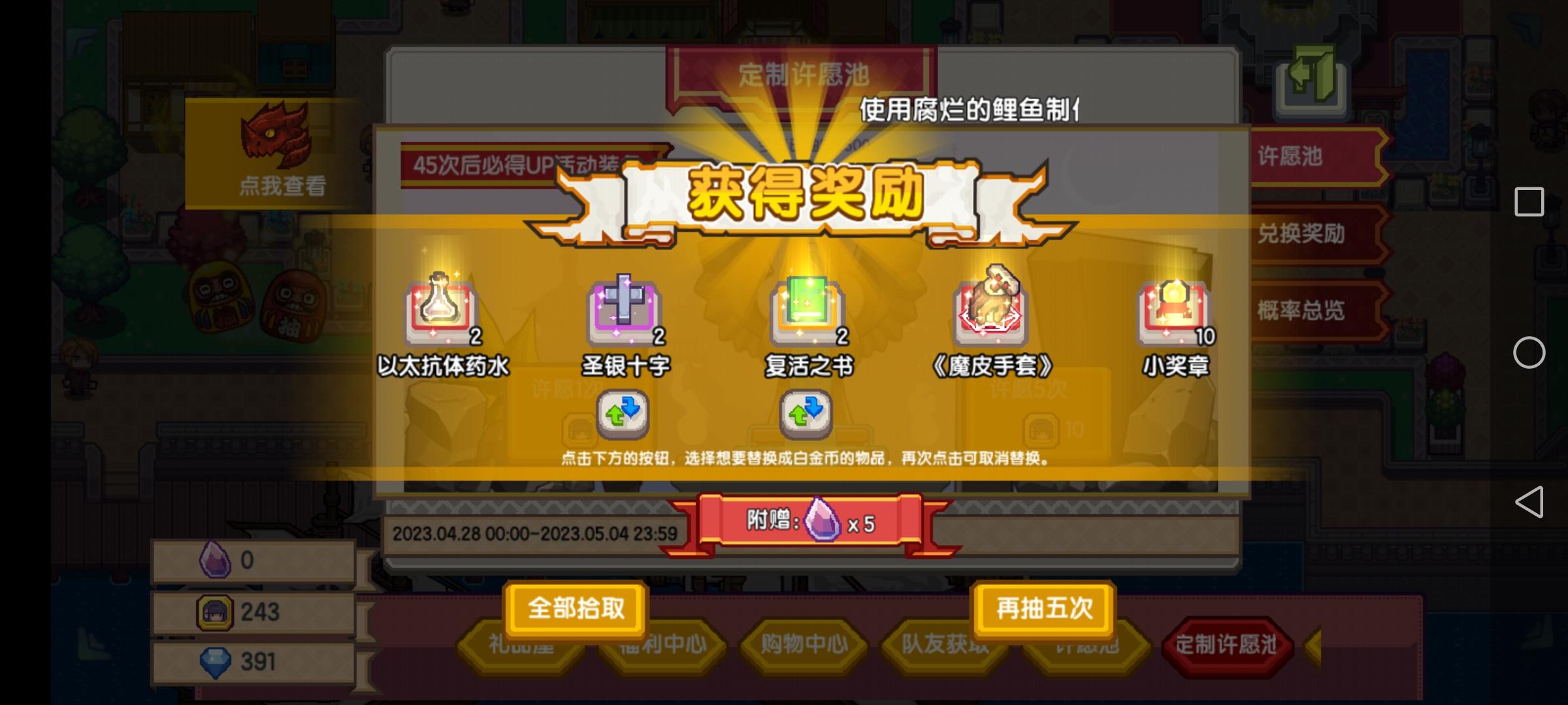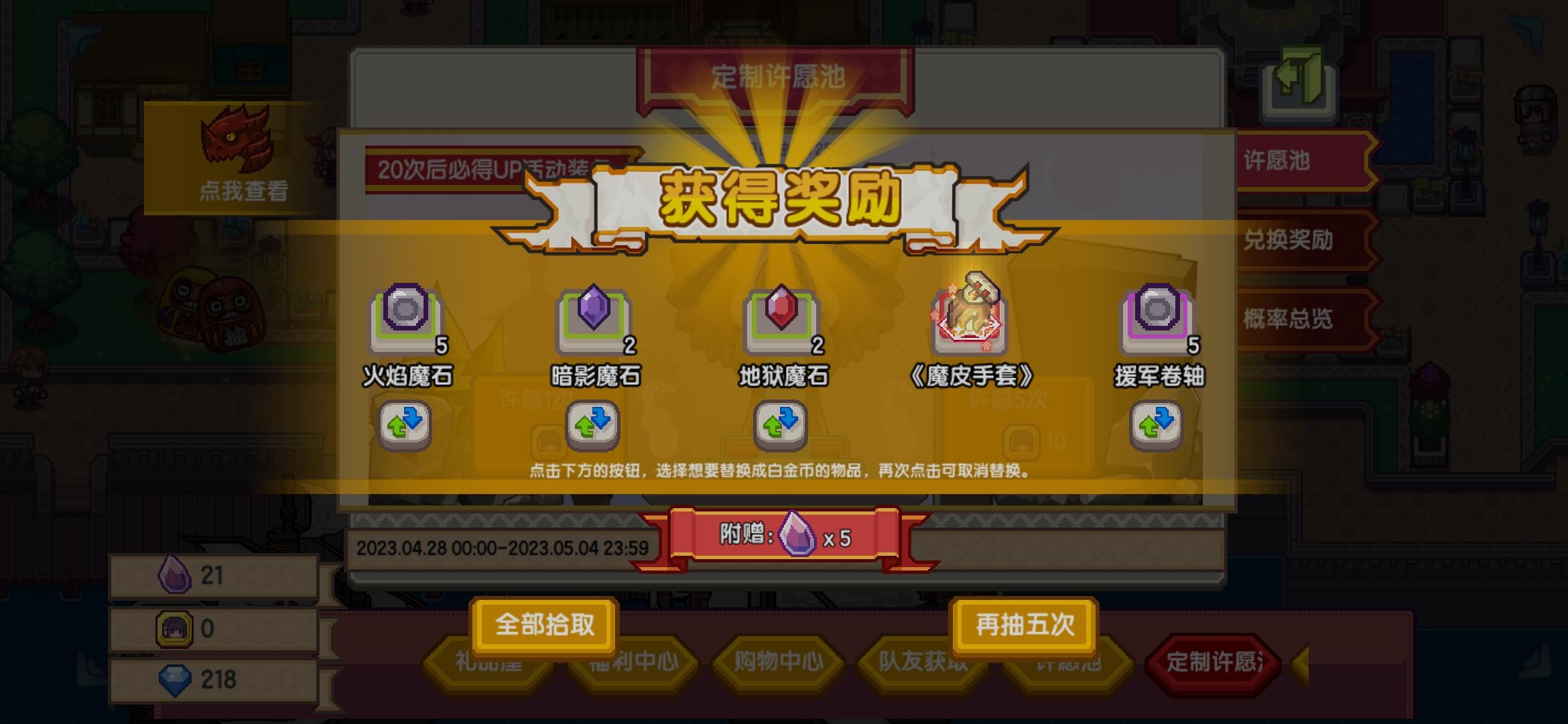 原来只有两件没捞出来了,感觉无所谓了,正常抽还有11抽就能保底了,再60个就能全捞出来了,还是继续等UP吧都是法师的东西,我这个小法师太心痛了