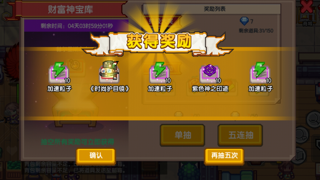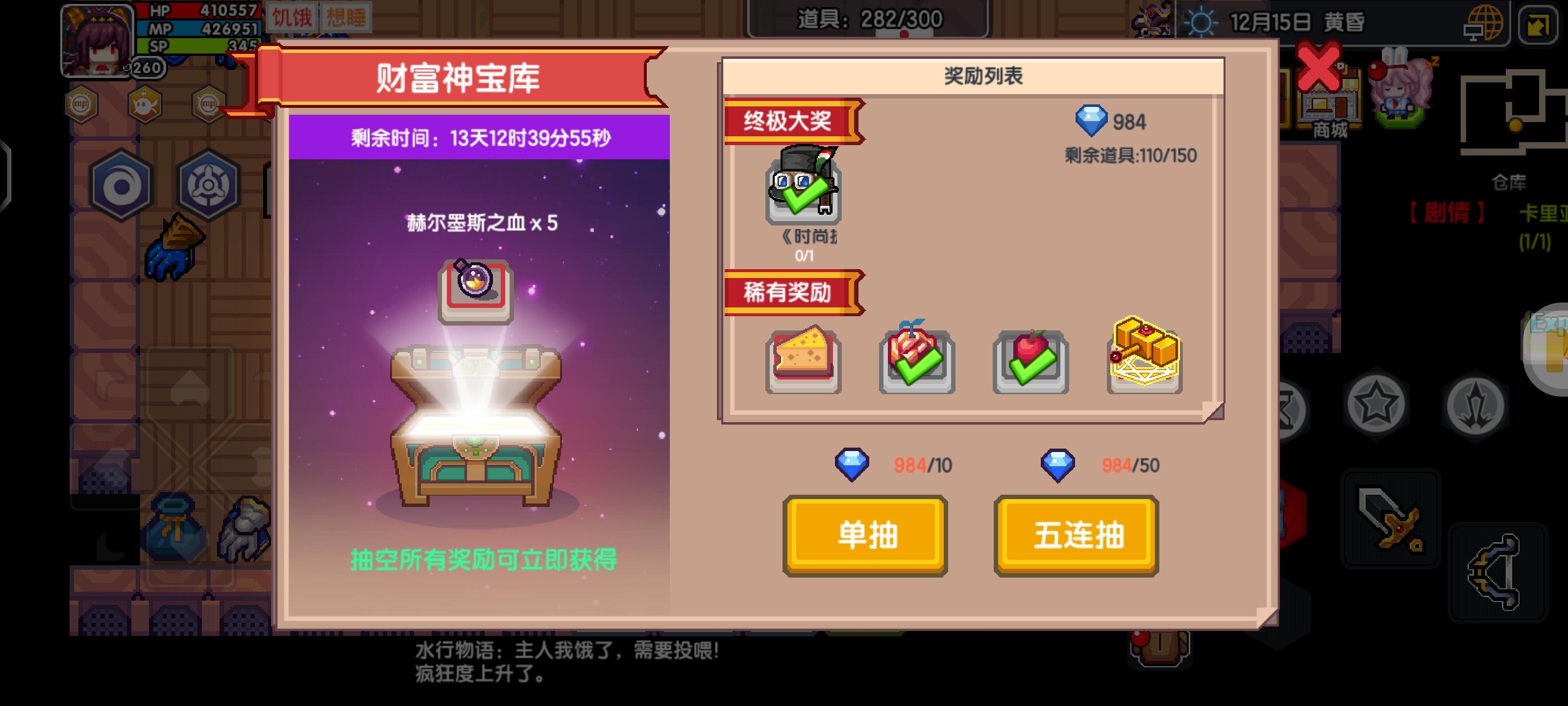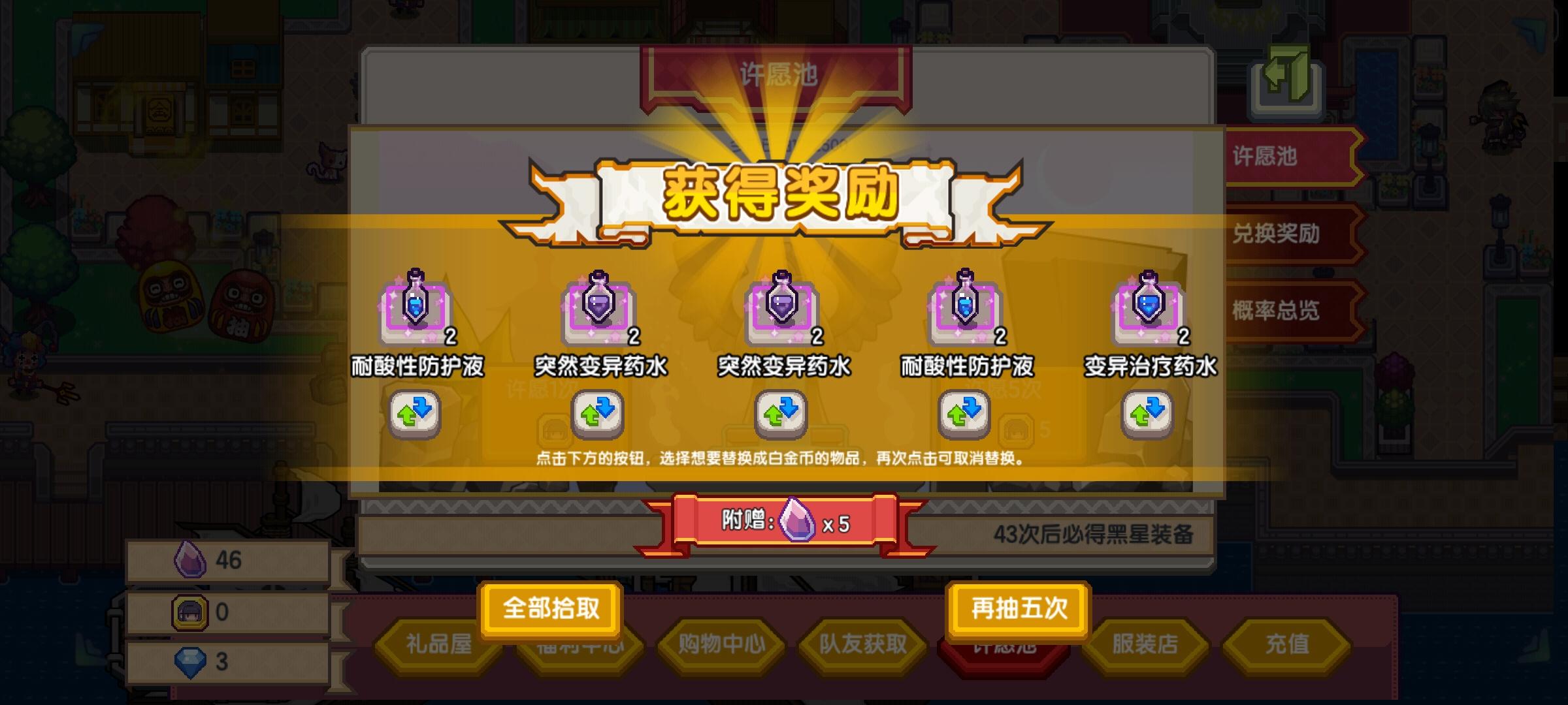 5分钟不到就吃了这么多耐性真——无限吃,永远都达不到饱腹的真实之前把耐性秘宝升6没时间吃,今天有烹饪任务就拿了50个蛋出来煮,催吐几下后发现可以无限吃,意料之外了属于是,牛蛙当然,这一样还是个没啥用的秘宝,不过我感觉比胶囊强了胶囊:?新黑星头,就当是力量套吧,需要的可以抽护目镜找个魔力,当法师装备去了