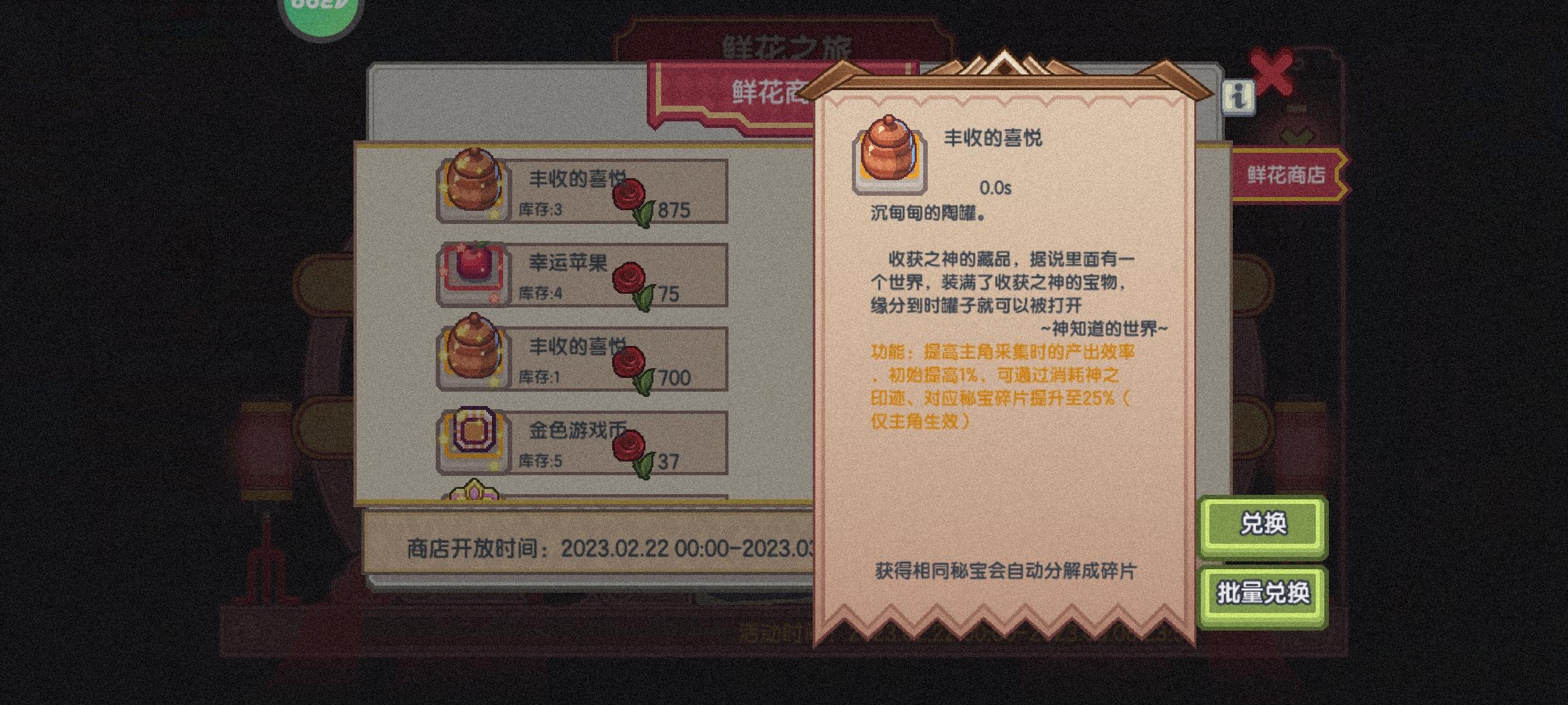 可以批量兑换,所以3个秘宝都是875,不会涨价喽?也不知道加双倍采集是225%还是250%。