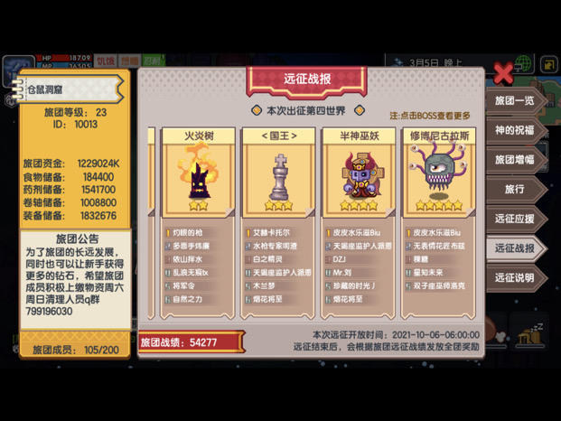 旅团ID: 10013等级23名字: 仓鼠洞窟旅团常开第四世界招募要求: 80级以下周贡2000 80以上3000周贡以食物为第一贡献目标。欢迎各位活跃的大佬萌新入驻。