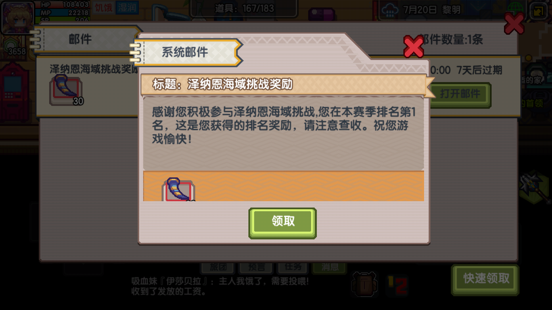 今个又是考试又是什么的,老觉得忘记了什么,一上线,哎,金徽章过期了,突然没动力玩了,明明过两天就是远征了,亚空间也要结算了,大小500钻石,但就是没劲,放了吧,要是这波钻石也错过,那我应该不会再有动力玩了,也算脱离苦海了