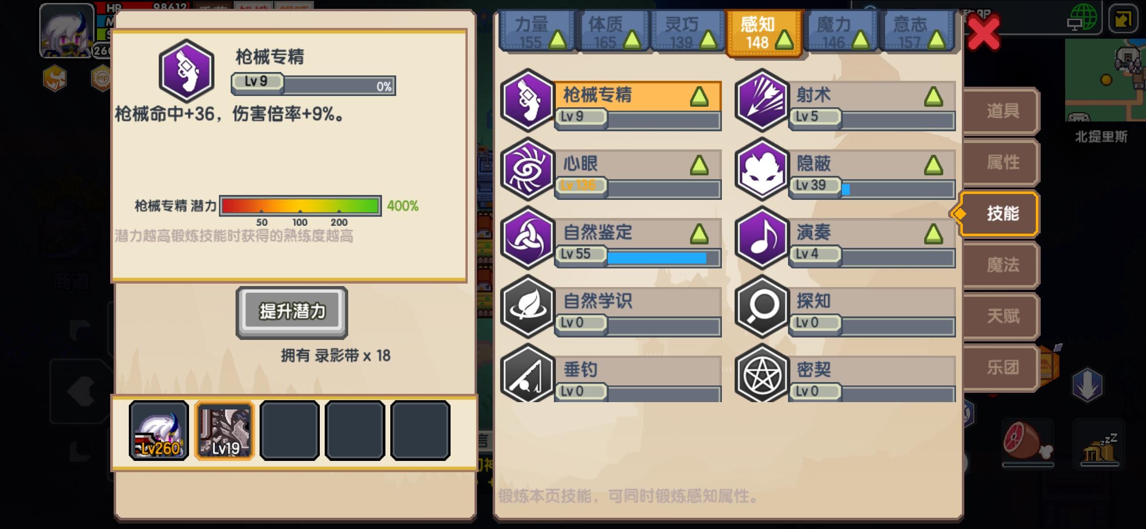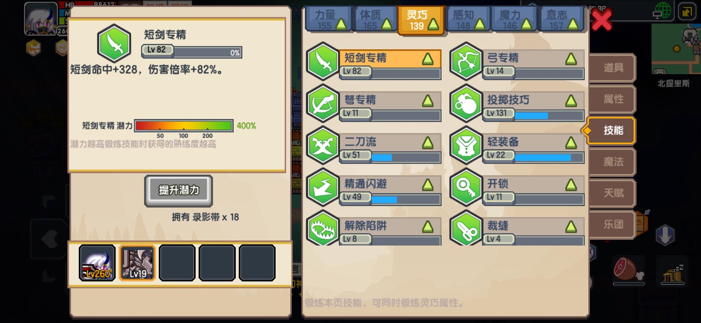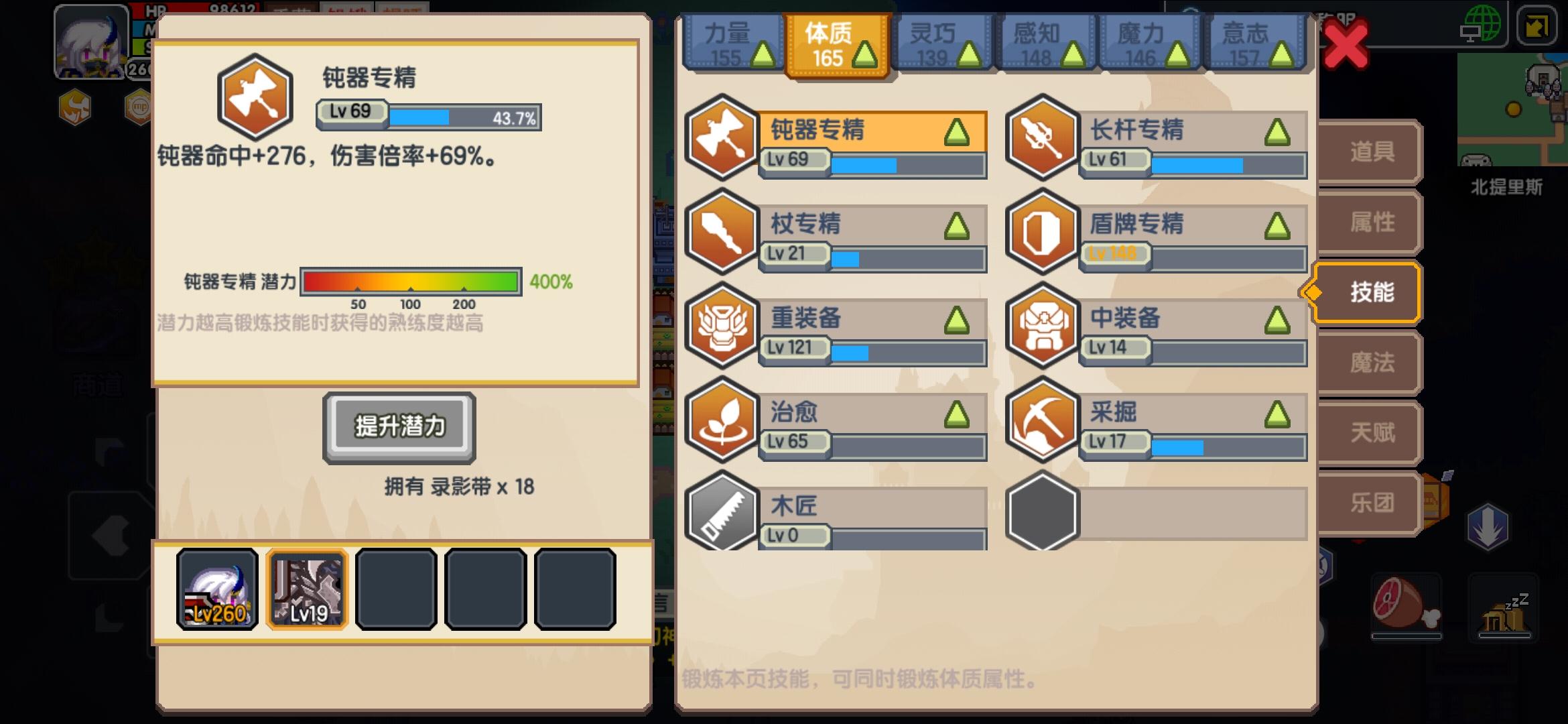 骑士养成日记500次练功房,结界术用挨打的方法练得还挺快的,终于两近战和法术都不涨经验了,今天训练结束