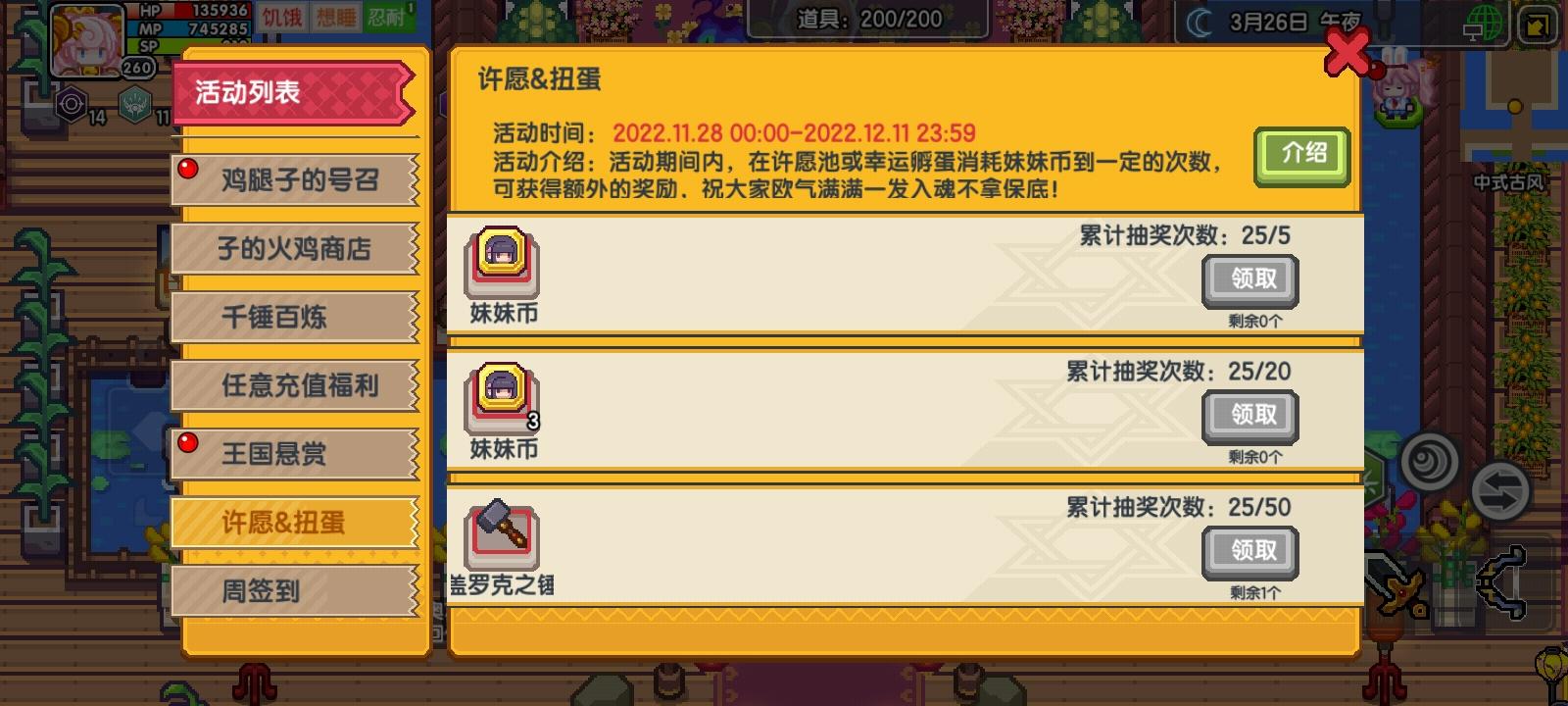 巴拉巴拉看不懂。1.俩密宝(特效流增强?)2.喵爪改为消费500钻了,好耶!3.墓后煮食者,啥技能啥天赋?天使护士,好看,想药。4.风之歌咸鱼三日月!!我全都要!5.召唤鸡腿子..我还是继续攒面具吧,要是能玩到年底就allin.6.新增队友招募!不消耗材料!还能出黑星宠和日之碎片。7.经验球(..我还是留给别人吐槽吧)8.魔物周2000级怪物改成1900啦!这下轻松多了!四黑星