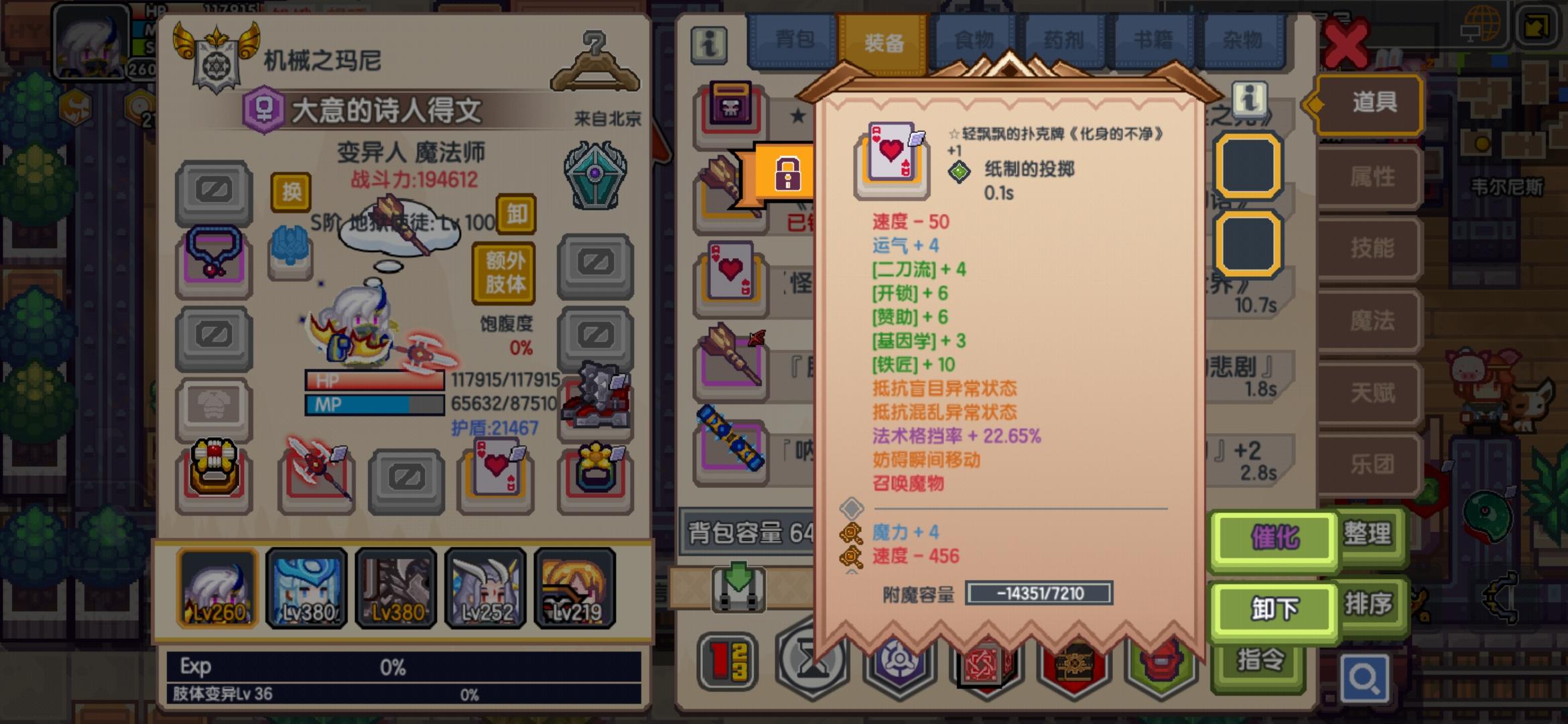 第一次杀巨人,现在感觉热血澎湃,后面给骑士合肢体,合耐性,做物免魔免小免法格,让骑士更肉一些 人物的话把减速装备合出来,做物免魔免小免法格 水人的耐穿点完了,后面点大法强,法触, 下一步养光环女巫,将软饭吃到底。