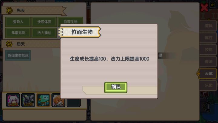 水人天赋一览很简单,就不用一一介绍了其次便就是进化————————————————————第一, 优先进化因子就是它的蛋,可以转化为因子快乐药水可以获取蛋(如果有年兽,可凑一个羁绊)——————————————————第二, 找一个合适的属性作为胚子的宠物————————————————————第三,重中之重 肢体技能合成1.主角穿上『负基因套装』注意,宠物要保持一级不能
