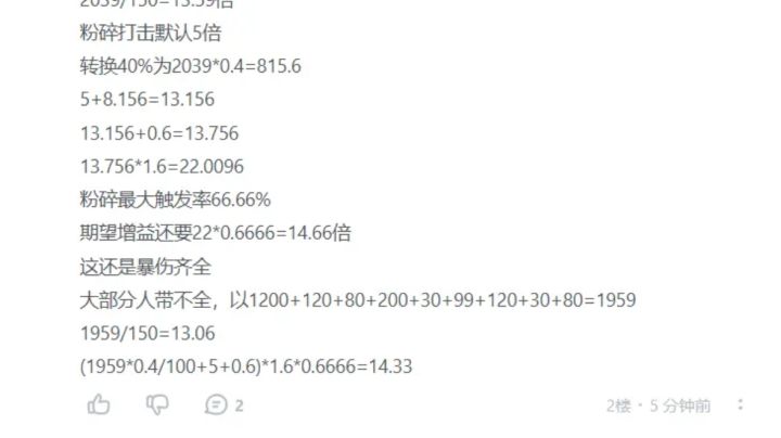 当前版本粉碎打击倍率计算(如有错误请大佬指点)