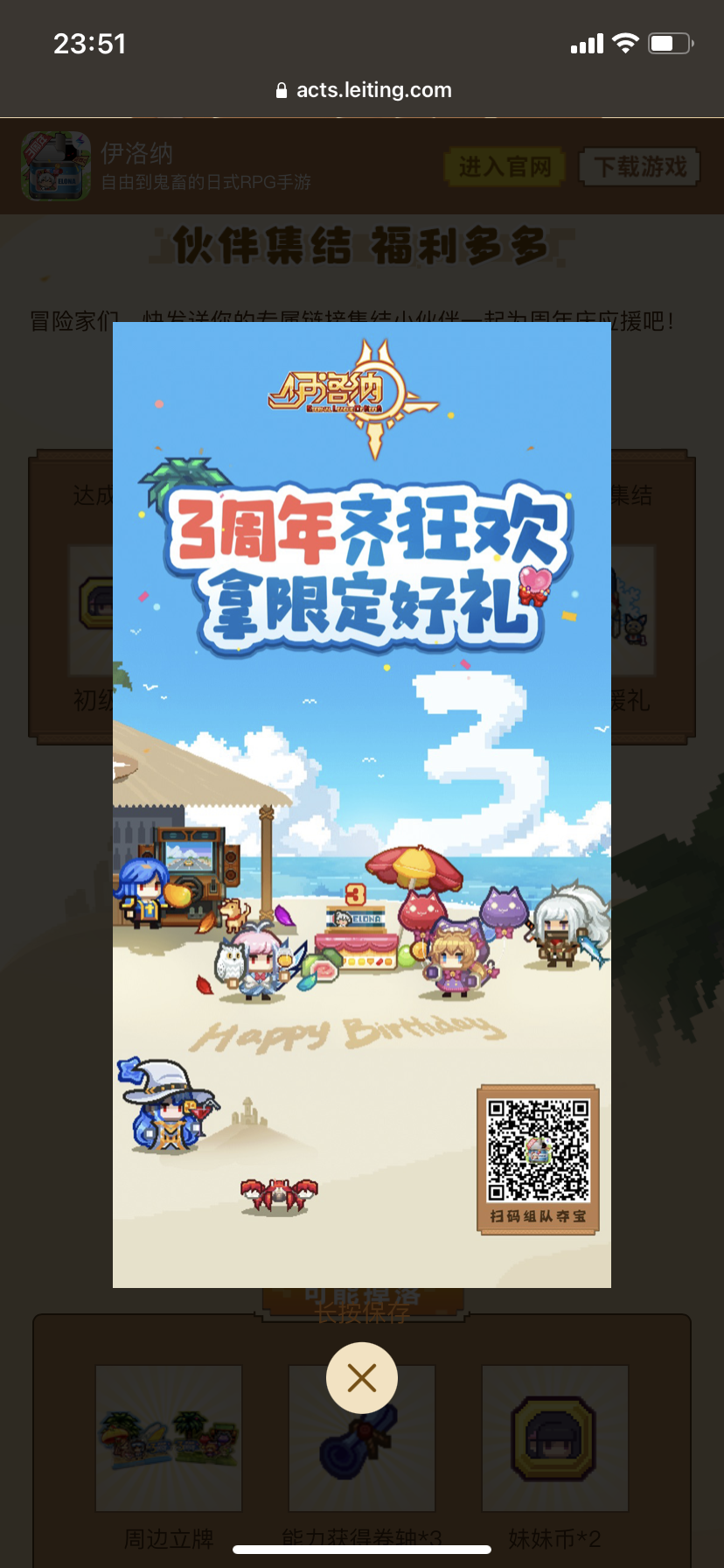 《伊洛纳》三周年庆来啦!一起应援解锁限定好礼,就差你啦!点击接受邀请https://acts.leiting.com/game/common/invite/ielona202208?invite=f8529771b379b845
