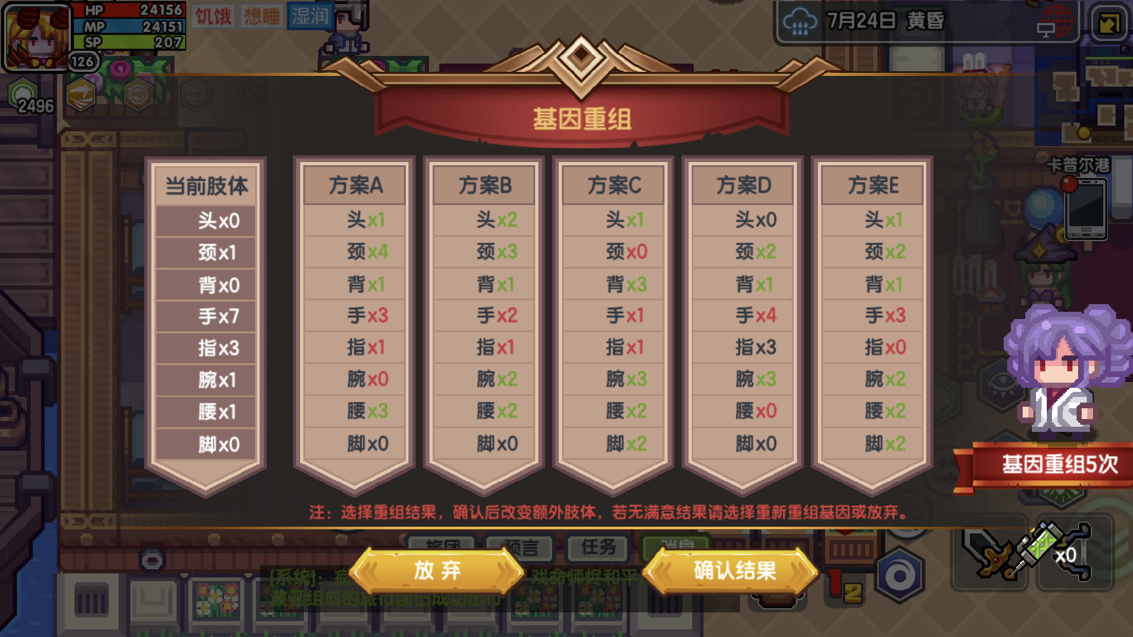伊洛纳幸运日这天的运气会增加777点,在这个游戏里运气属性正常情况下上限都只有100。运气能够帮助获得更高品质的物品,避免触发类似于打劫下雨这种不幸的事件。因此可以利用这点来做下面几个收益高的事情:扭蛋游戏前期会赠送少量金色、紫色扭蛋币,开启后获得的装备品质是随机的,在高运气这天开启能大幅提高获得传说品质装备的概率,去抽蛋和许愿也有一定出货几率加成。变异富人靠科技,穷人靠变异。良性变异能增