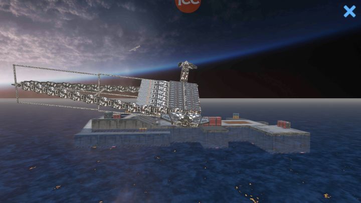 目前完成度70% 噸位3000000(有3分1來自用來調重心的房子,配重塊太輕了,起不了作用),也因為這隻艦太重,穩定器失效,無法浮在空中(求大神指教),而且未裝配任何武裝