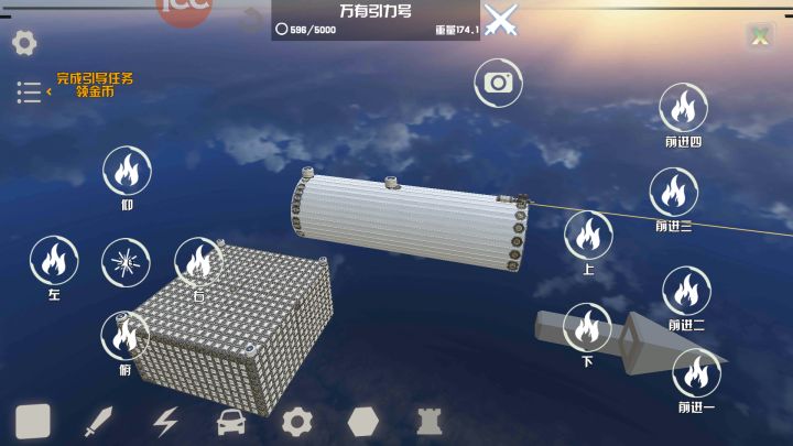 前几天看到论坛有人说导弹总是绕圈打不到人,寻求一个精准的导弹,同时我自己做的导弹性能也不太好,昨天想了一个下午,就有了这么一个东西飞行过程平稳,甚至可以当做浮游炮转向速度高,同时回转半径小,亲测这个导弹可以拦截别的导弹﹌﹌﹌﹌﹌﹌首先要有一个能用的导弹(这里忘记关掉战车无敌了)然后需要一些改造前进的方向上放几个带阻力机翼,并把推进用喷射器力量调到合适位置(目的是消除惯性,能做到按下喷