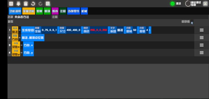 begincode;name:未命名方法;1:UICircle 圆环=fun ui.circle(Vector3 0.75,0.73,0:Float 300:Float 10:Color 119,119,119,255);2:=fun ui.circle(Vector3 0.75,0.73,0:Float 250:Float 1:Color 119,119,119,255);3:=fun ui.c