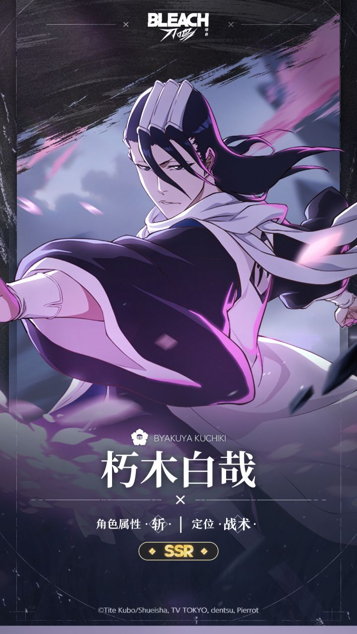 第六番队队长。四大贵族朽木家的第二十八代当家,同时也是朽木露琪亚的义兄。作为贵族,他秉持着必须成为所有死神规范之人的信念而行动。因此他常给人冷酷的印象,但其实也是个深情的男人。游戏中的白哉是中距离单体输出角色,战技释放期间可以同时切换队友攻击。战场技可让白哉在后台持续辅助输出,并降低敌人斩系抗性。朽木白哉拥有强大的脱手攻击手段,是斩系队输出的强力辅助。点击下方图片,一起查看朽木白哉的技能详情吧