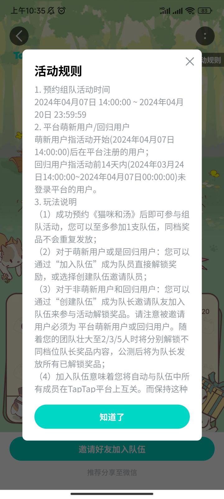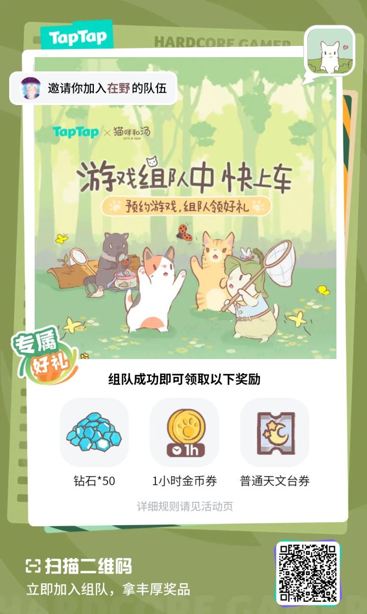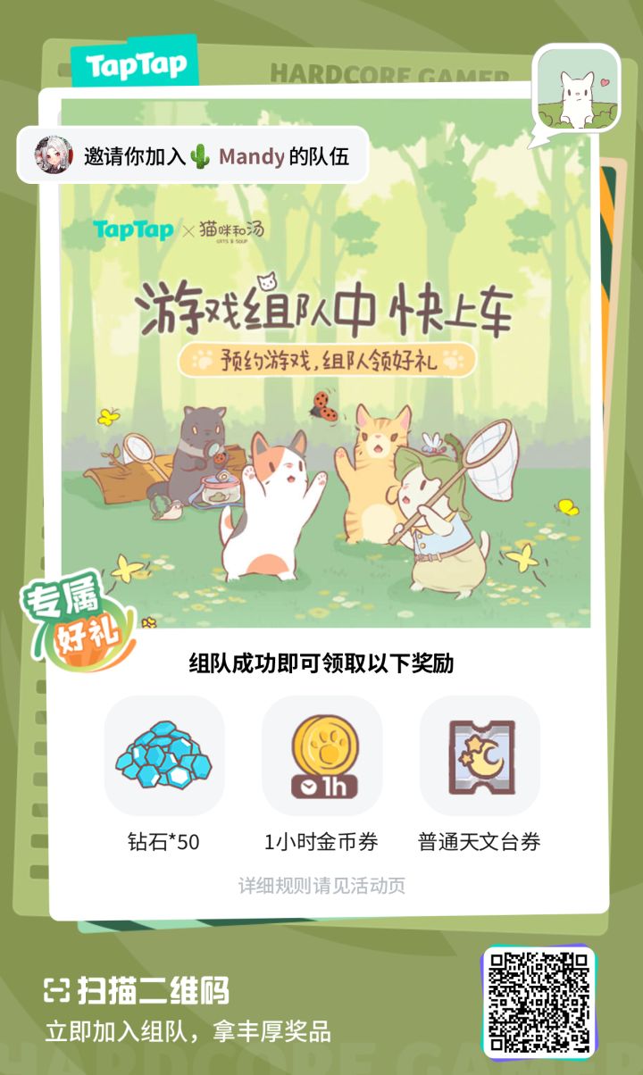 《猫咪和汤》预约组队中,快上车预定游戏好礼https://www.taptap.cn/poster/NDBfrNenTxmJ?share_id=95adba71fc28&utm_medium=share&team_id=509&utm_content=aid319&utm_source=copylink