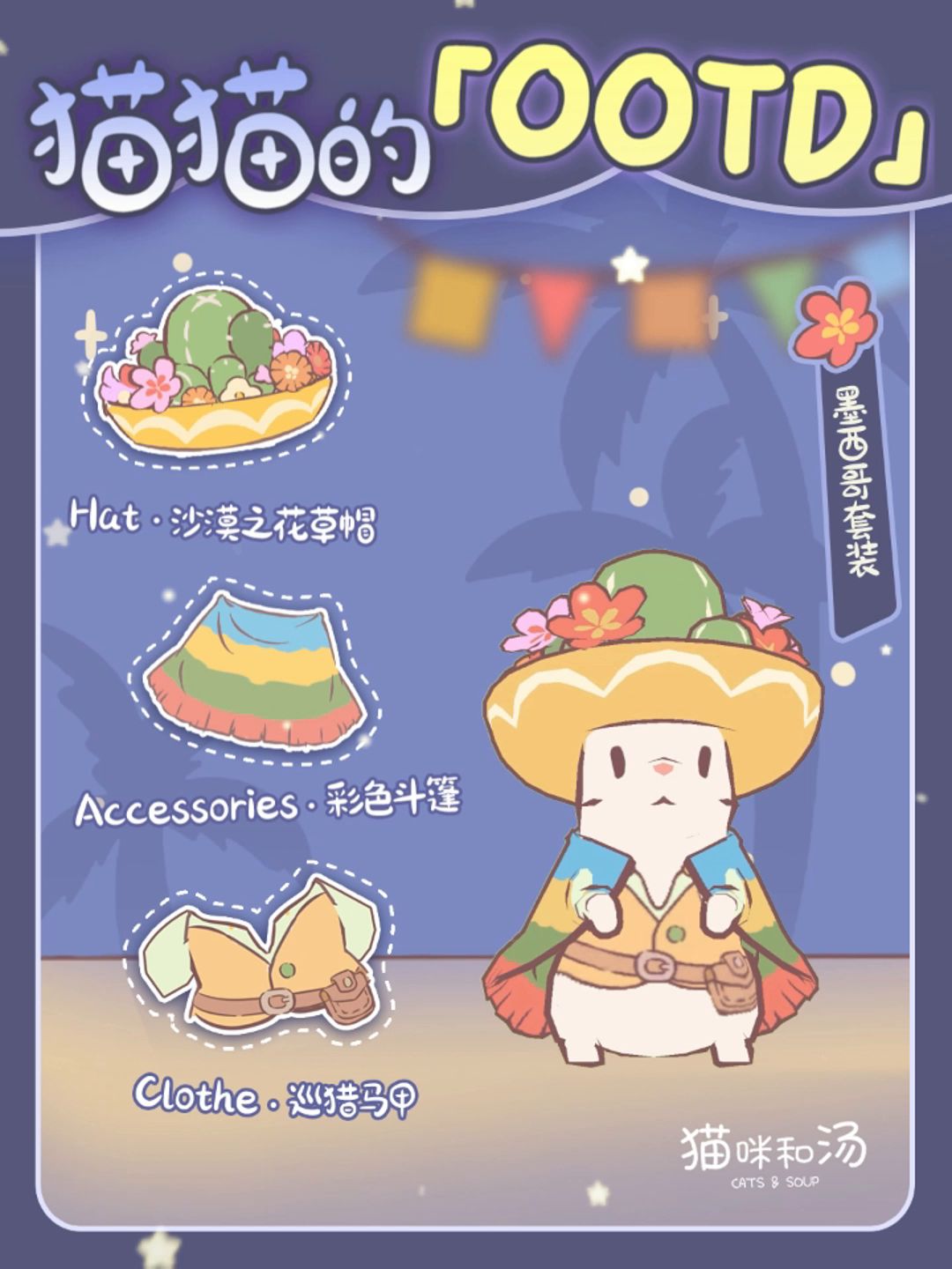 作为一名牛仔猫猫,kiki有自己独特的时尚品味 在大檐帽上装饰仙人掌和沙漠之花,披上彩色的斗篷 穿上这身去参加篝火派对,一定会成为全场焦点喵~ 待派对结束,则是换上睡袋席地而眠 做一名牛仔,就是要迎着第二天的朝阳……出发……zzzZZZZ..... 🌵 上新预告:装扮「墨西哥套装」&「睡袋套装」将在11月通行证上线~#猫咪和汤 #游戏日常 #发现好游戏