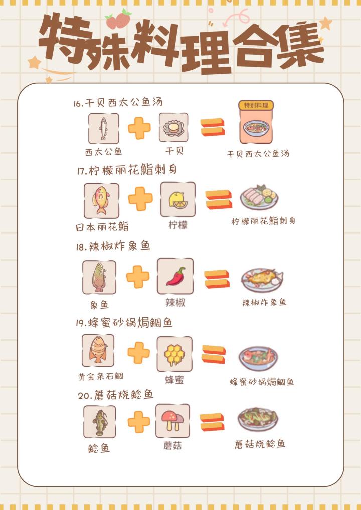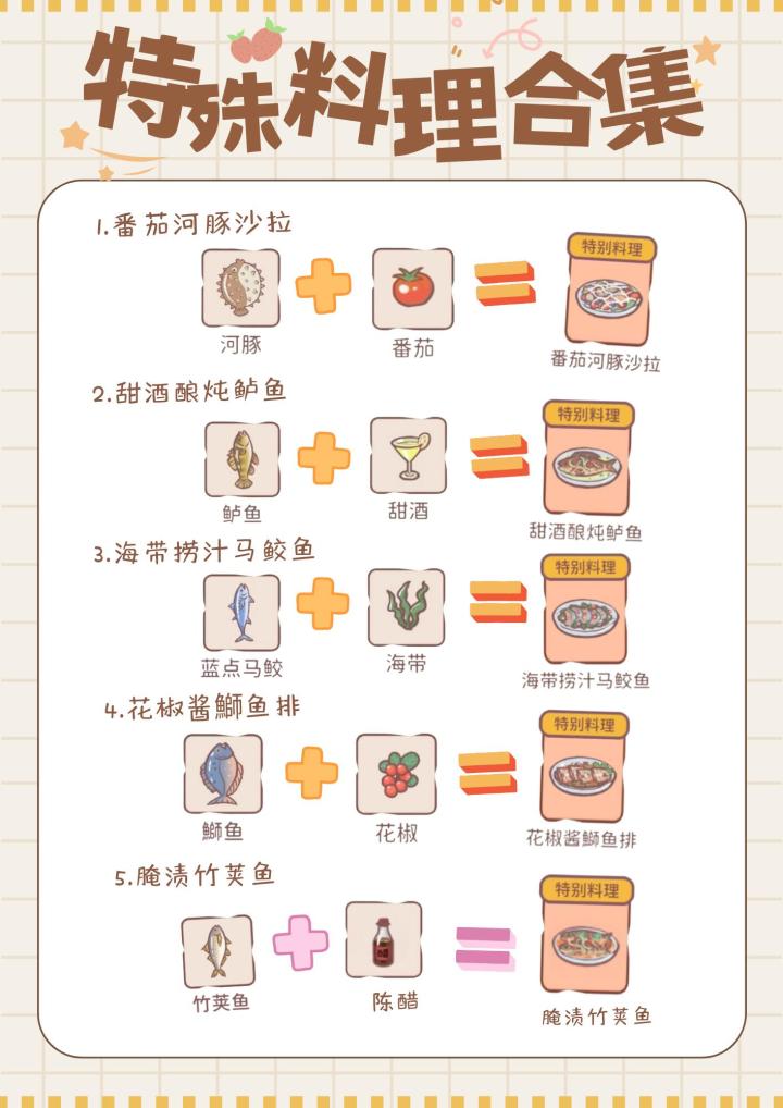 总结了一版目前为止所有的特殊料理以及用到的🐟~供宝宝们收藏使用‼️‼️请不要盗图二改二传!制作不易,谢谢大家支持-关注我,获取猫咪和汤最新攻略#猫咪和汤 #猫咪和汤攻略 # #发现好游戏 #猫咪和汤攻略
