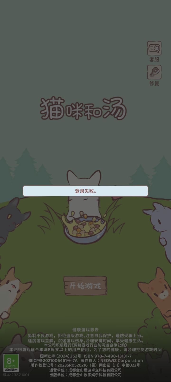 为啥老是闪退,看广告也看不了了,现在登录失败了#游戏闪退 #猫咪和汤