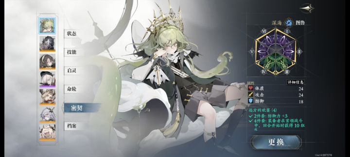 从第一次打1-13被4千多血的BOSS“吓傻了”,到现在不用复活币打完第四章困难BOSS,果然是“轻舟已过万重山”哈哈!推荐阵容如下,相比血肉要算胚胎,超维更加复杂,深海则上手难度简单很多。(无关强度,只是讨论上手难度)①盾-莉莉。超级好用的“肉奶”,新手必备!觉醒技能够➕最大生命值,搭配图二的命轮,同时密契选择图三,这样不仅【防御】卡多,而且一次【防御】能加两次最大生命值。所以优先觉醒她,前