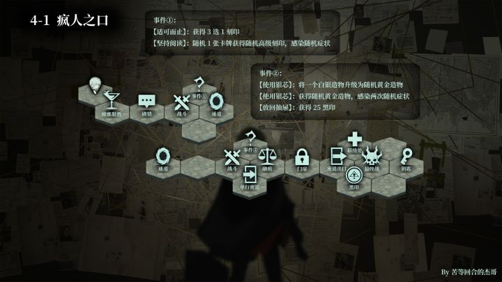 如有疏漏,欢迎指出。补充一点,图里的事件描述“获得随机XXXX”等,在游戏中体现为你能看到获得哪一种,但是每一局游戏同样的选项最后获得的都可能不一样。以下为更新记录:2023年7月22日20:33:38 修正2-14图中高危战的位置,补充改图中特殊事件中的特定造物描述2-15这里,为了剧情体验,不推荐看地图!!!2-15这里,为了剧情体验,不推荐看地图!!!2-15这里,为了剧情体验,