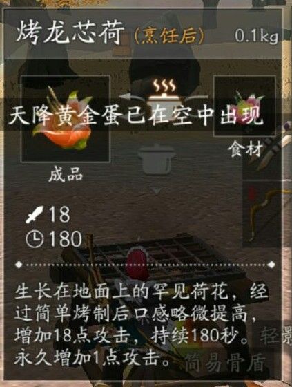 大家好!我是零度,风云岛上的食物有很多,今天我给大家介绍一下这些食物吧!烤龙心荷烤龙心荷吃了可以增加1点永久伤害和18点限时伤害持续180秒,在和敌人对战之前可以先吃一个,这样能让你打出更高的伤害。烤布袋球烤布袋球吃了可以增加10点护甲持续180秒,配合烤龙心荷不仅能打出高伤害还可以抵挡不少伤害。烤玉米烤玉米可以追踪360米内的敌人并暂时性提示移动速度,是侦查和追击必备的食物。烤红薯
