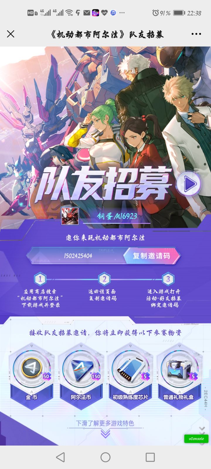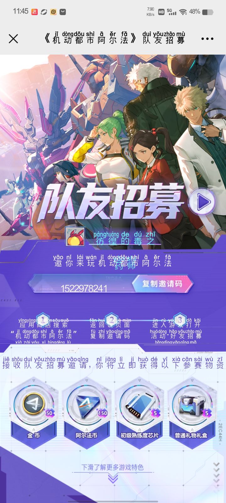 一起领奖励招募码,可以互填高级的来
