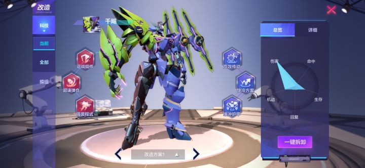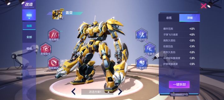 普通自爆700(不伤害自己),飞行不消耗能量 二核自爆1500(自己也扣1500),飞行不消耗能量 普攻速度很快,打机甲170打小人34 定向雷炸弹我不知道,但是这东西是脱离战场的好东西,可以对自己无伤击飞并且还可以自己控制什么时候爆炸 总结:团战搅屎棍,属于入门级机甲,爆发伤害极高