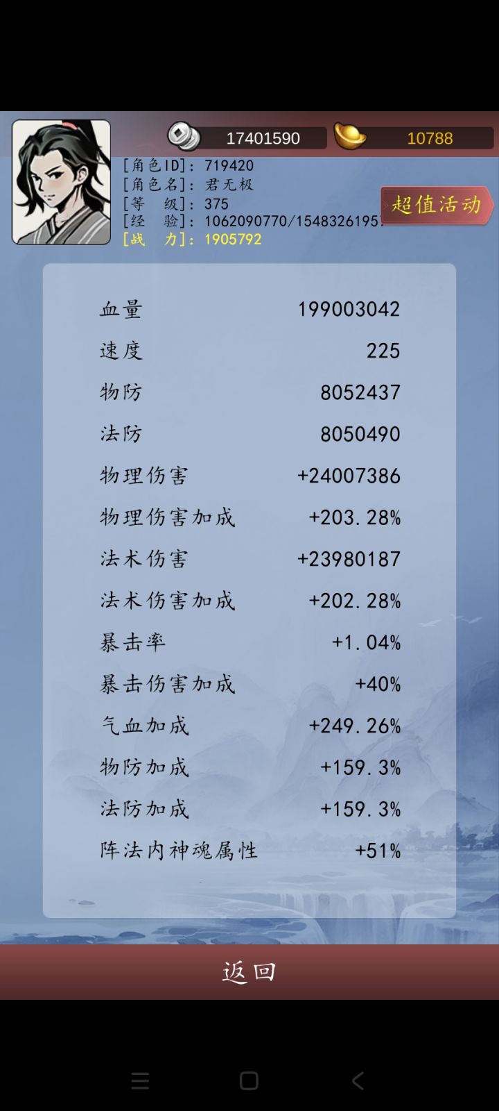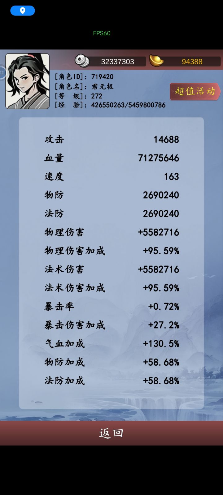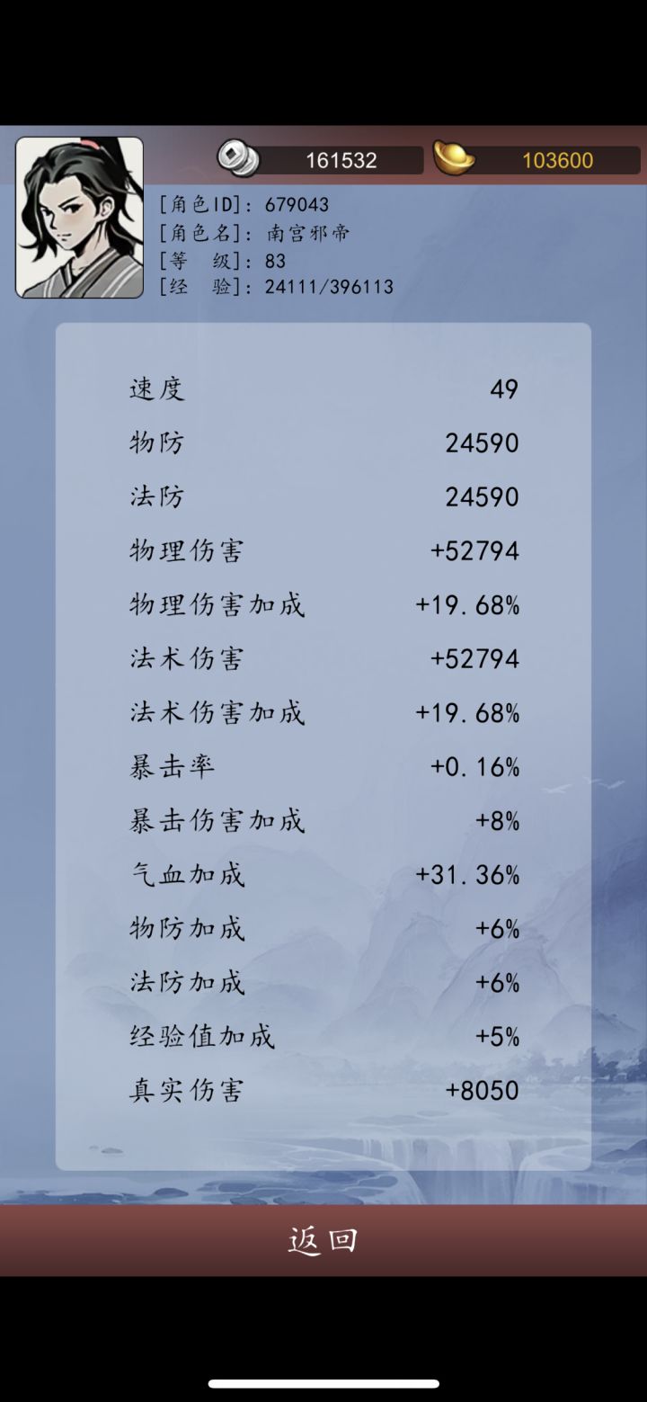 五十级妖王通关属性,大约剩4,5分之一血。属性比我再弱一些的可能要补补才能挂妖王,打完升了一级那一级加的属性没计入因为我不清楚加了多少